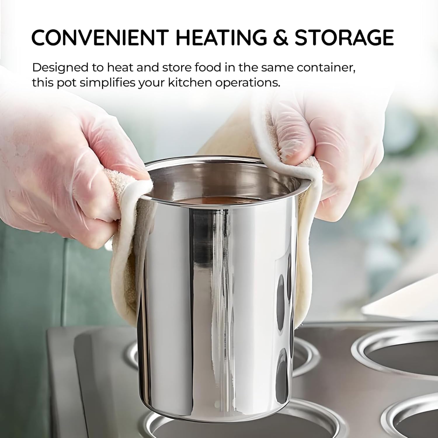 Convenient Heating and Storage: Designed to heat and store food in the same container, this pot simplifies your kitchen operations. After use, allow the container to cool, seal it with saran wrap or a lid, and save time and energy during cleanup. Ideal for quick-service restaurants and efficient foodservice.