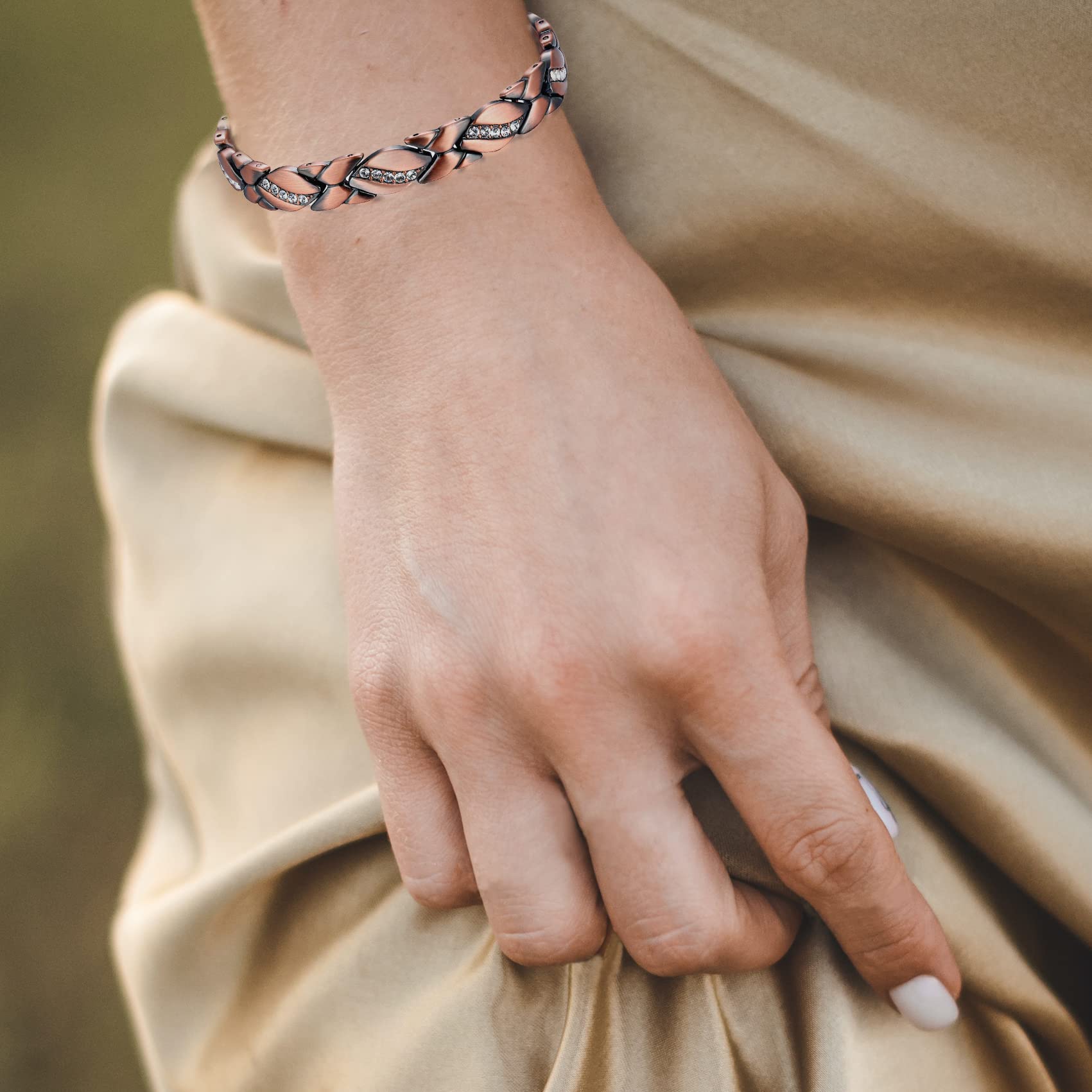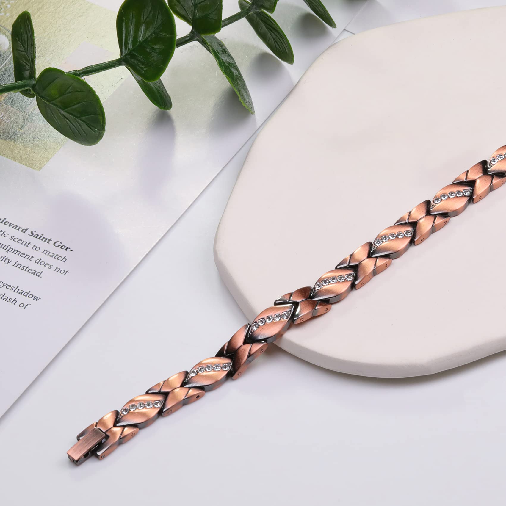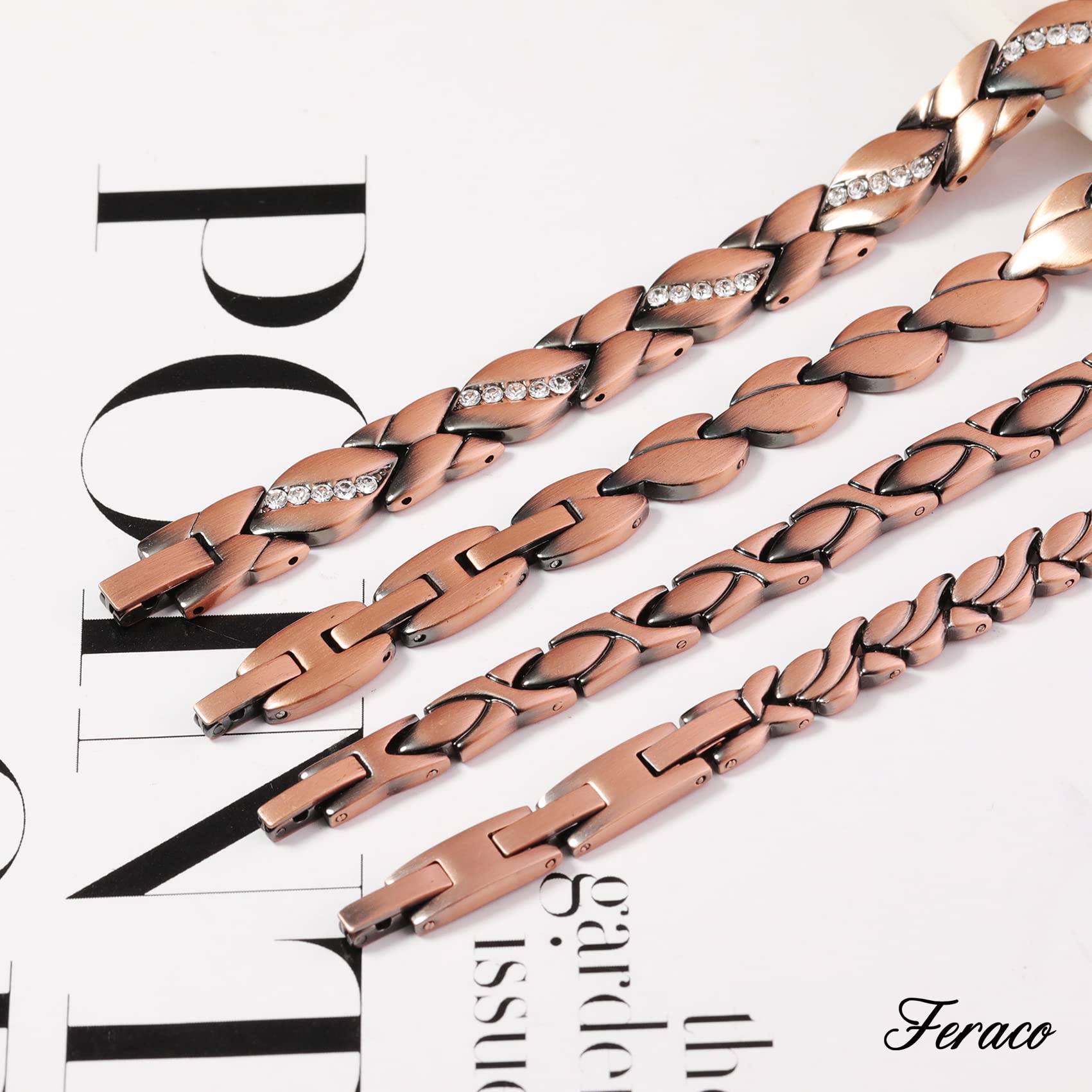 Description Feraco Copper Bracelet for Women for 99.99% Solid Copper Magnetic Bracelets Unique X Shape Links Magnet Jewelry