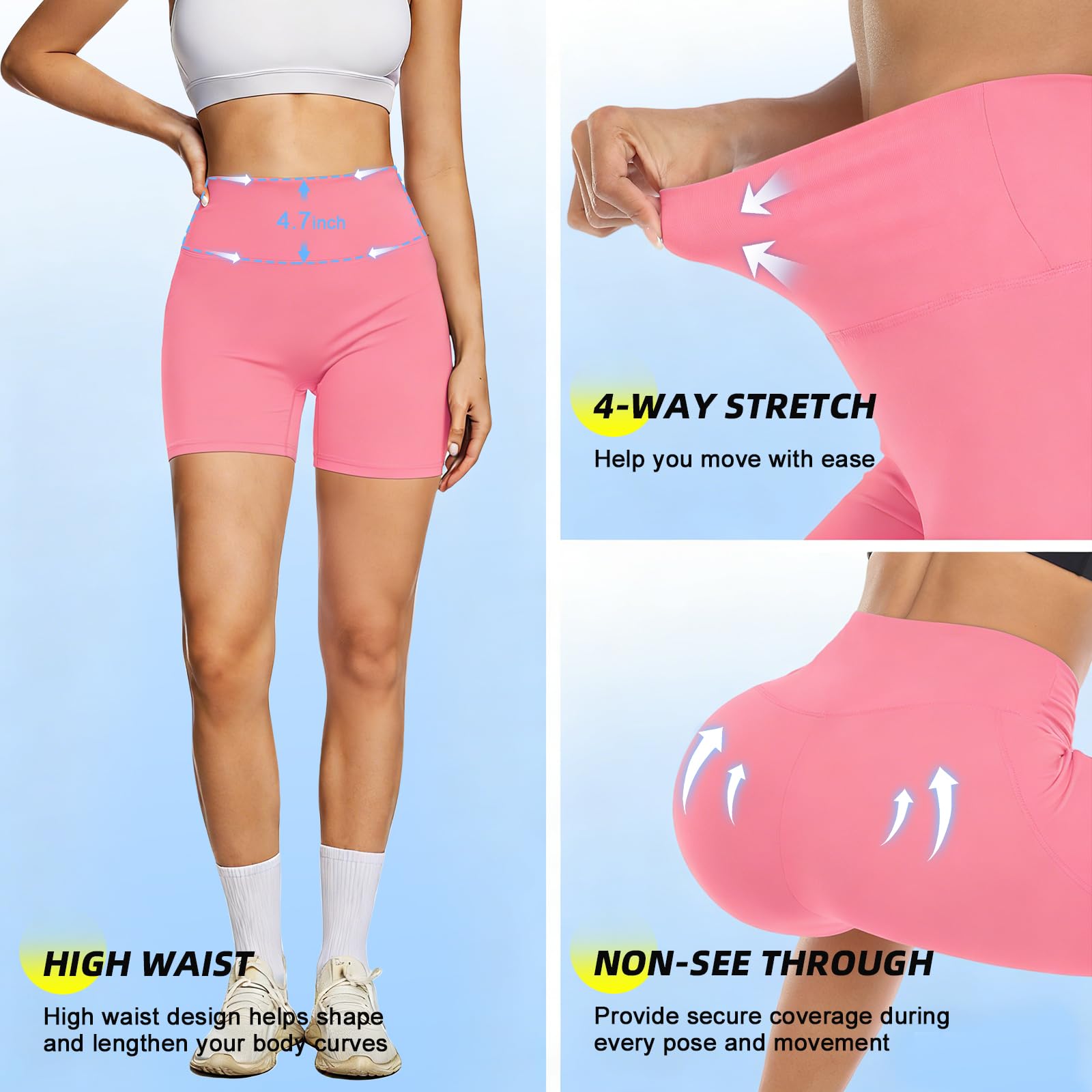 EXTREME COMFORT - This high waisted spandex booty shorts is super soft, breathable and cozy fabric feels amazing against your skin and also stretches to move with you, This workout biker shorts for women are breathable, non-sweat and quick dry, The interlock seams minimize rubbing, allowing you to feel comfy all the time