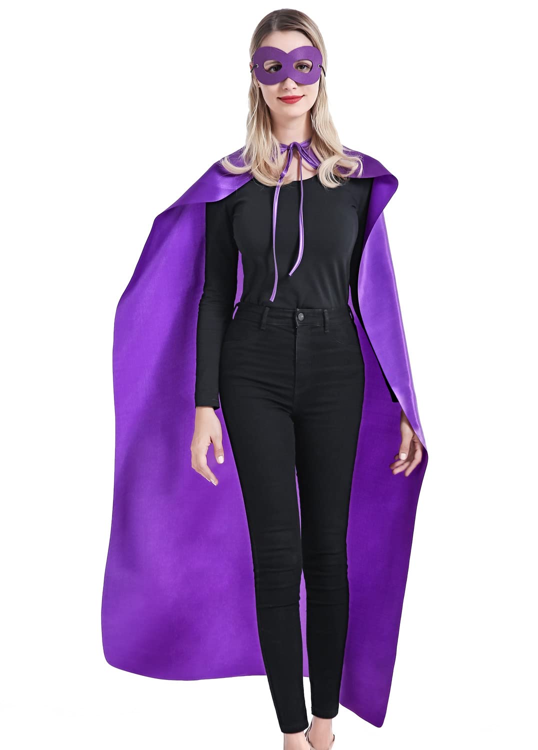 Adult superhero cape and mask set includes:1 cape and 1 color matched mask