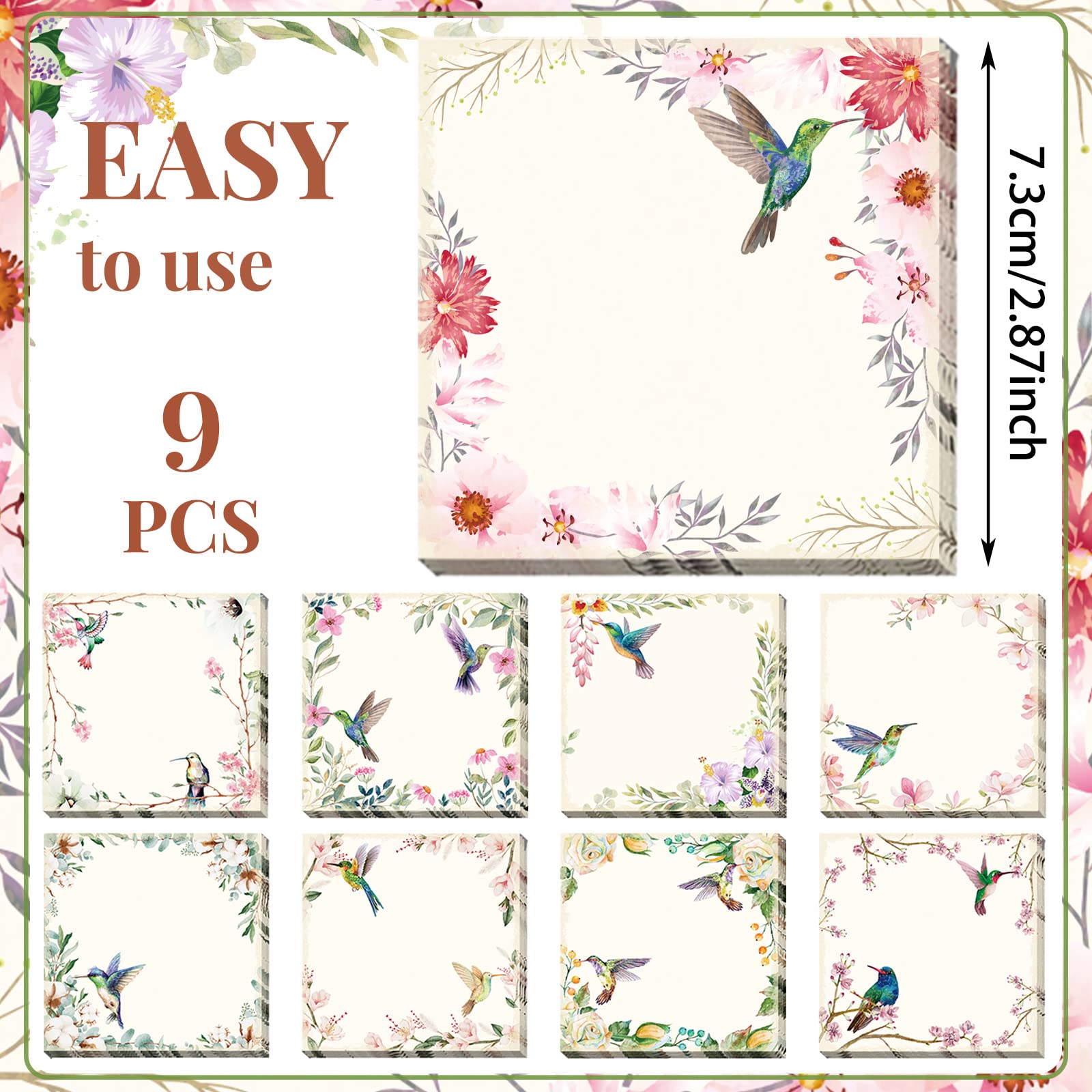 Meet Your Requirements: the package includes 9 styles of hummingbird note pads, each has 50 sheets, a total of 450 sheets; The abundant quantity and various styles easily meet your daily use and replacement needs; You can also share with your family and good friends
