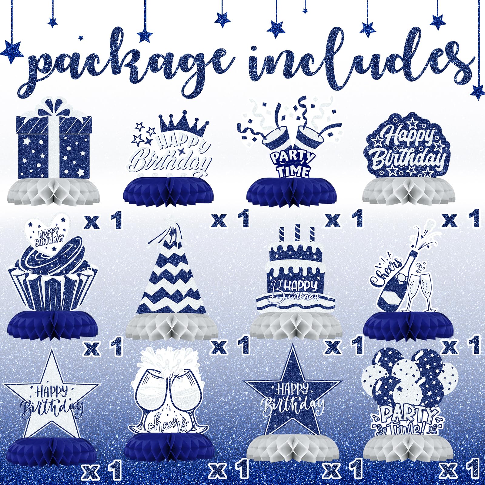 What You’ll Receive: This set includes 12 beautifully designed blue and silver honeycomb decorations, featuring birthday-themed cards and paper honeycomb balls. These blue and silver party decorations are perfect for enhancing the atmosphere of any milestone birthday celebration.