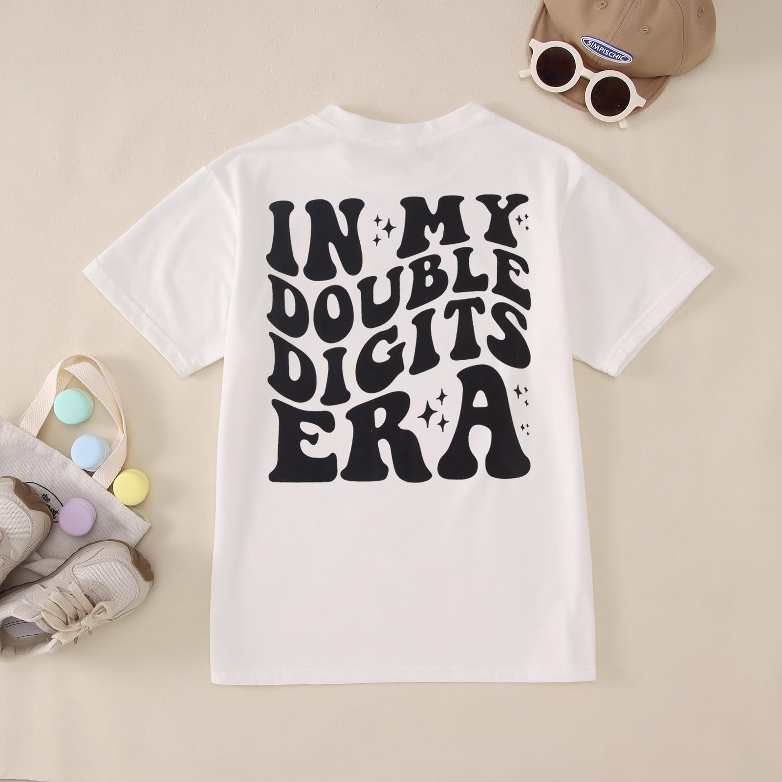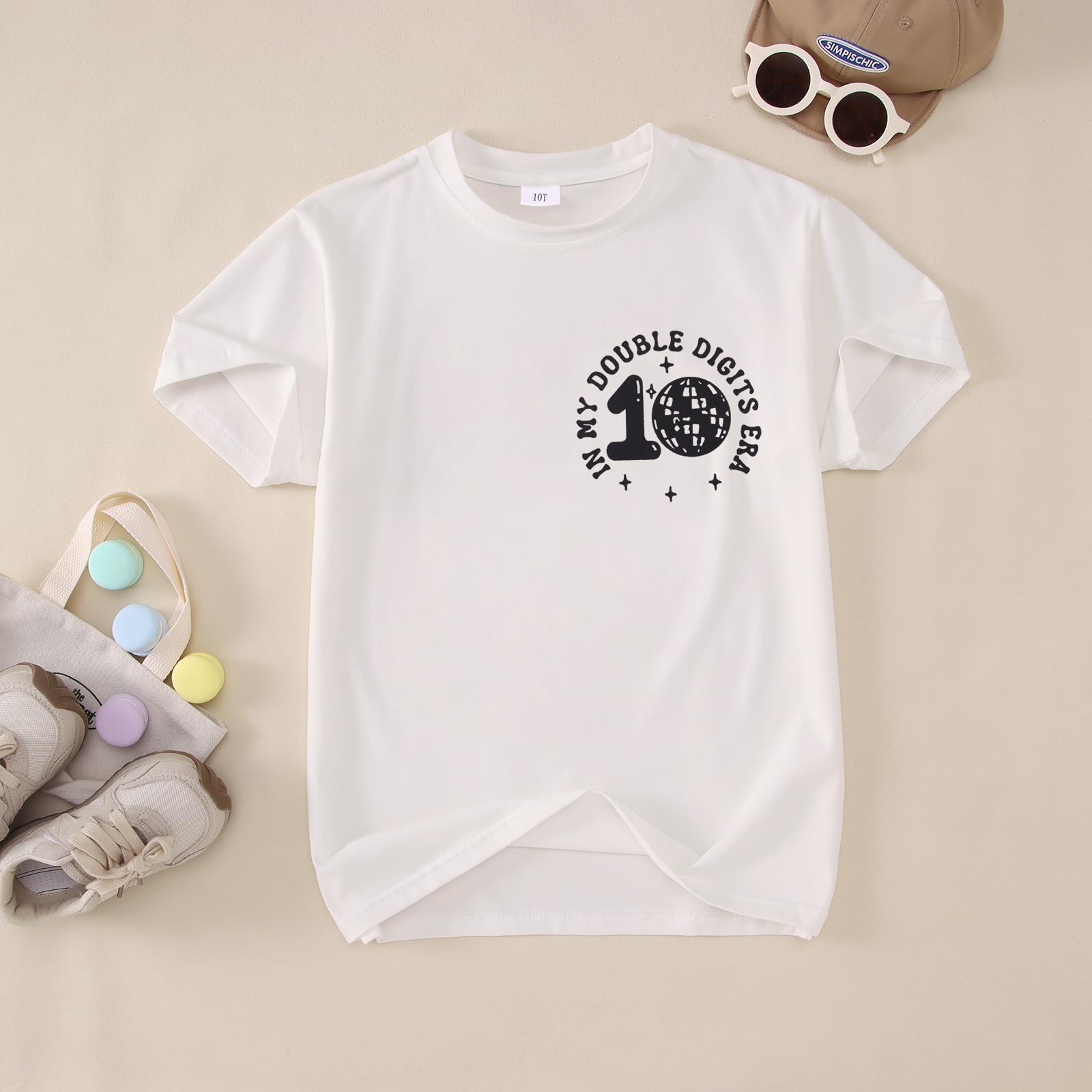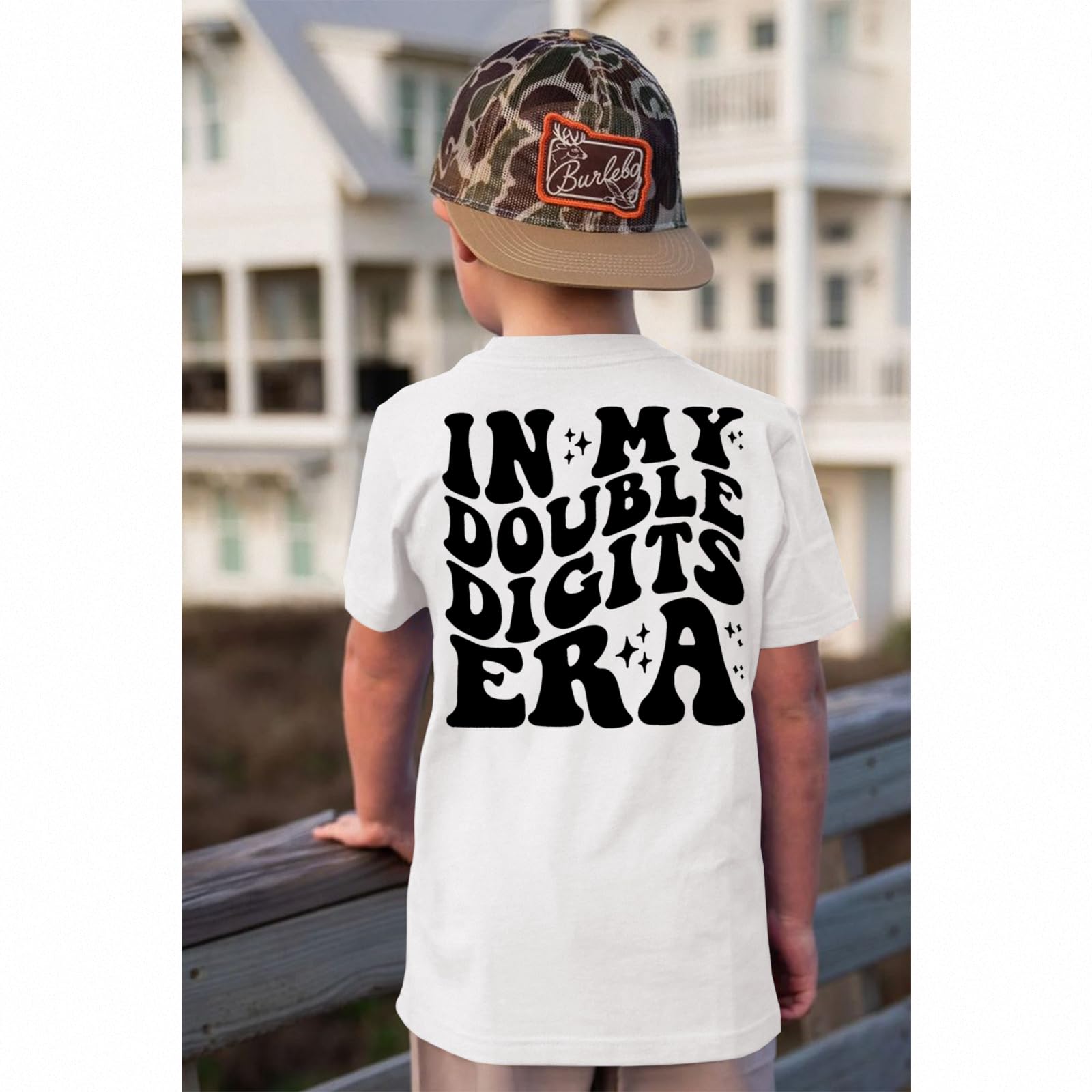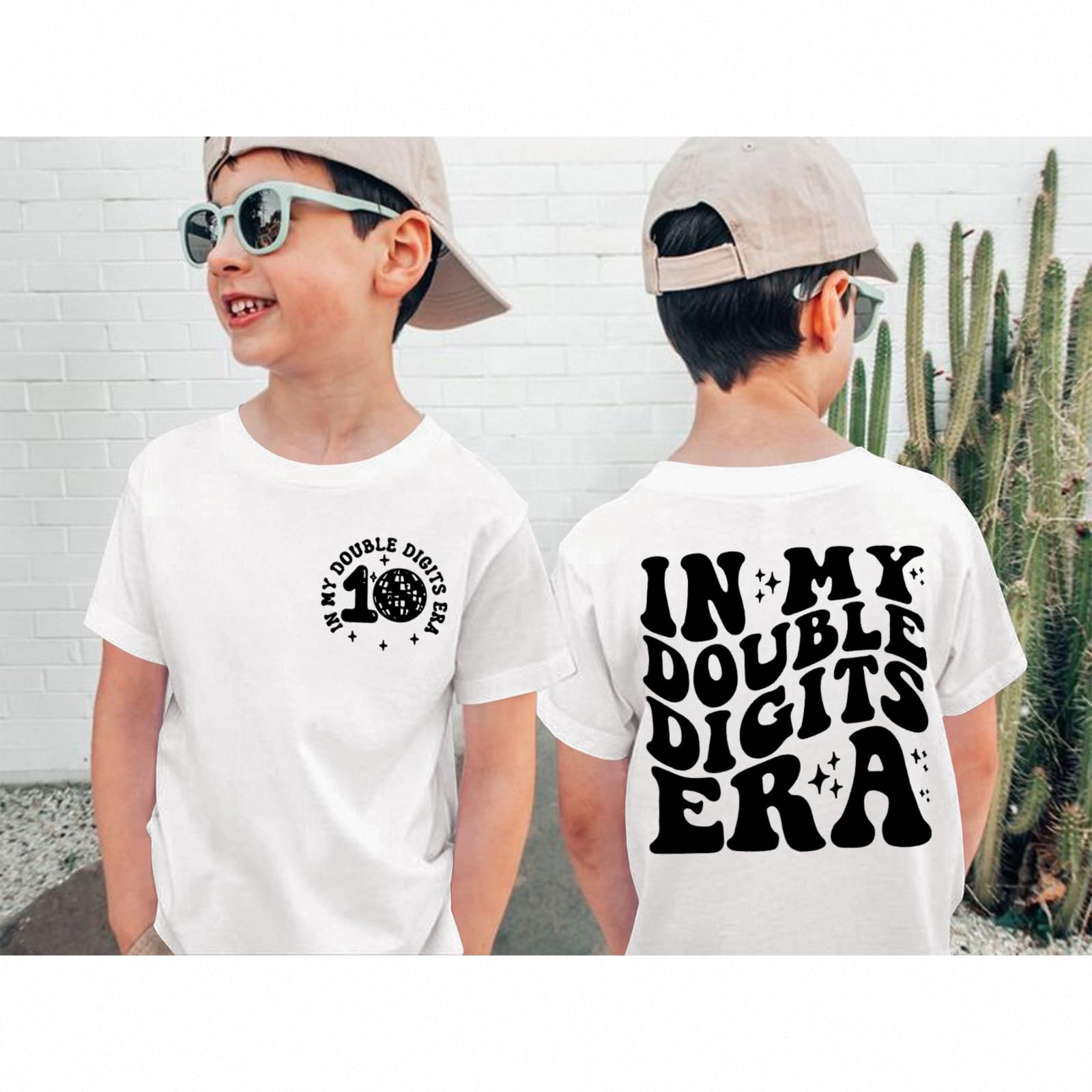 【Feature】In my double digits era t-shirts for boys. Short sleeve summer tees, classic round neck 10 years old boys shirts. 10th birthday boy t-shirt, groovy double-sided print design, in my double digits era letter print tops, star graphic, funny birthday gifts for 10 year old boys kids.