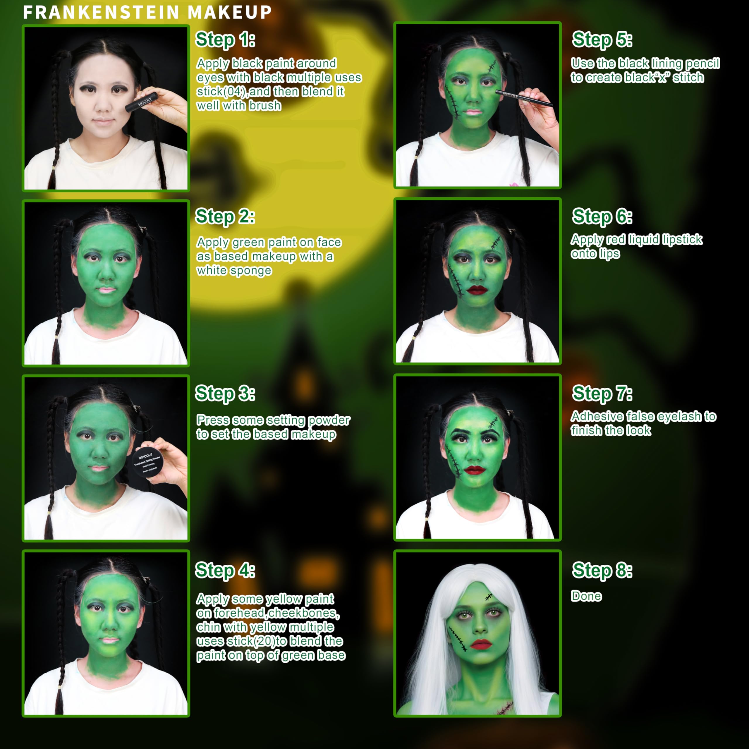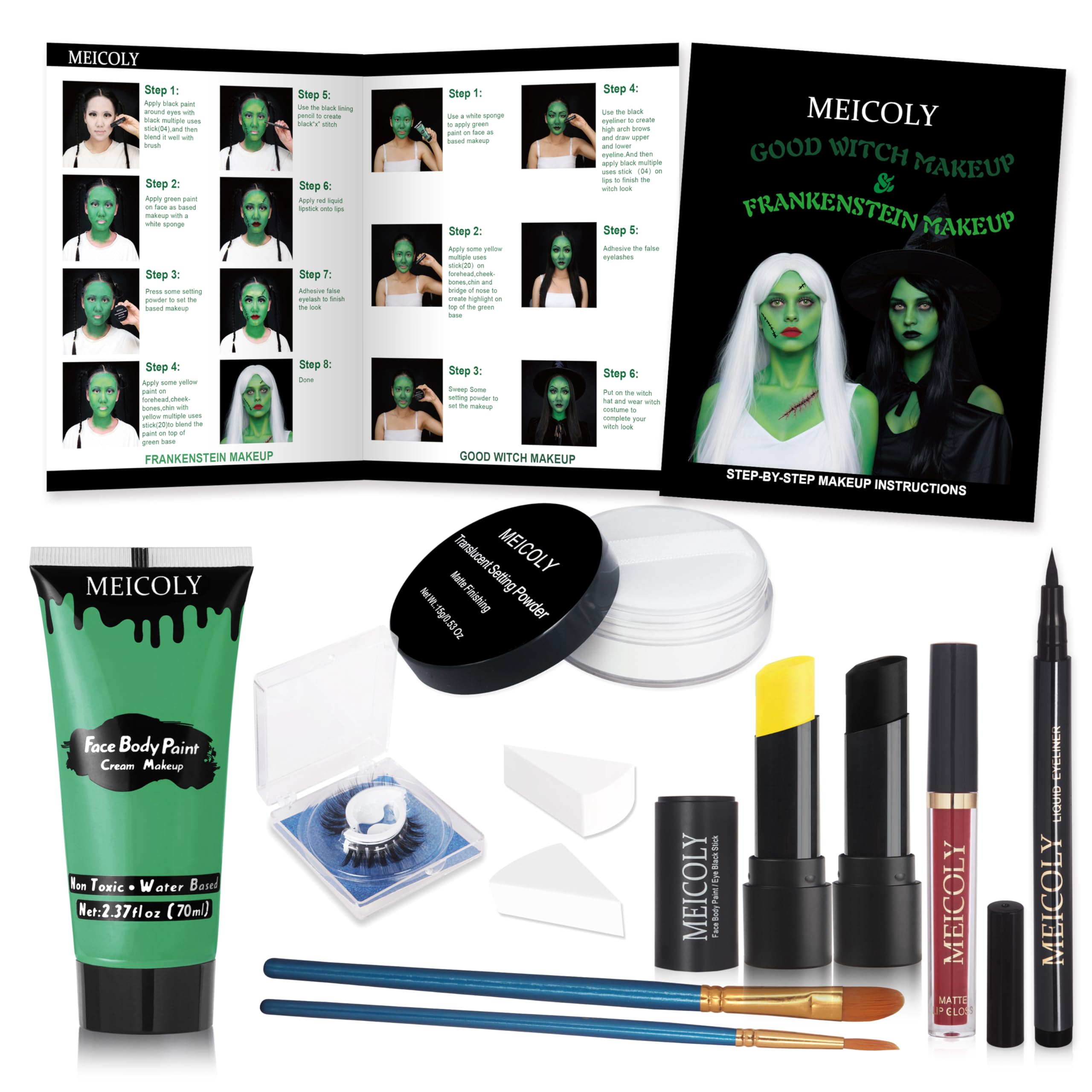 Versatile For Many Occasions: Ideal for Halloween night, costume parties, school events, theater, or cosplay.Complete makeup set for witch look or frankenstein look.