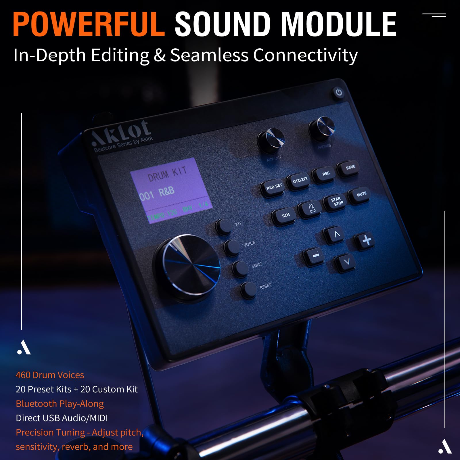 Studio-Quality Customization & Realistic Playability: Unlock pure acoustic drum tones with the advanced sound module featuring 460 meticulously sampled voices, recorded in top studios for unparalleled authenticity. The deep editing system lets you shape and tune just about every facet of your kit — from the shell’s tone and cymbal articulation to adjusting sensitivity for perfect dynamic response. Create your ideal acoustic space with studio-grade effects including adjustable reverb, precision EQ controls and more, while the 20 preset kits and 20 user kits ensure instant access to both professional and personalized setups.