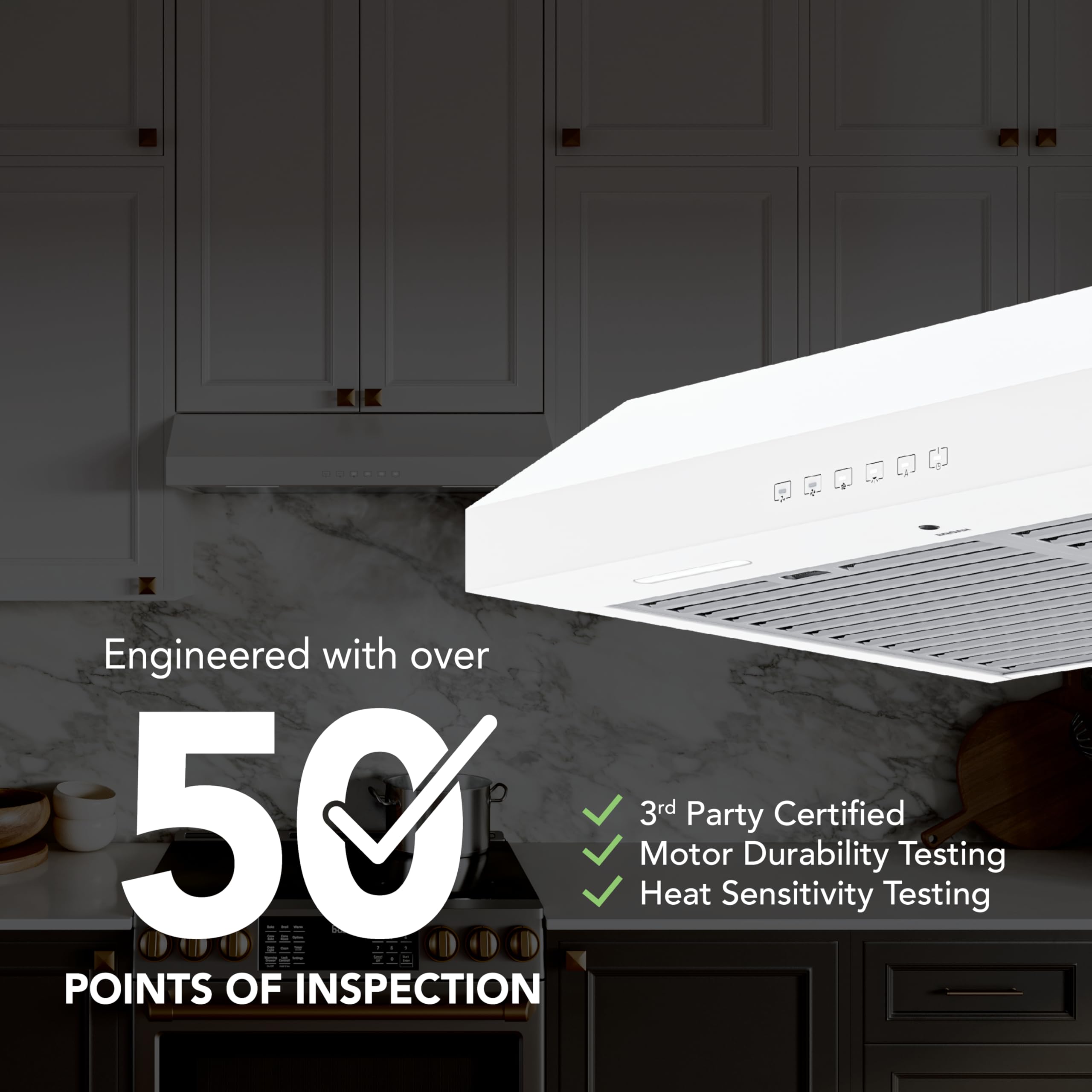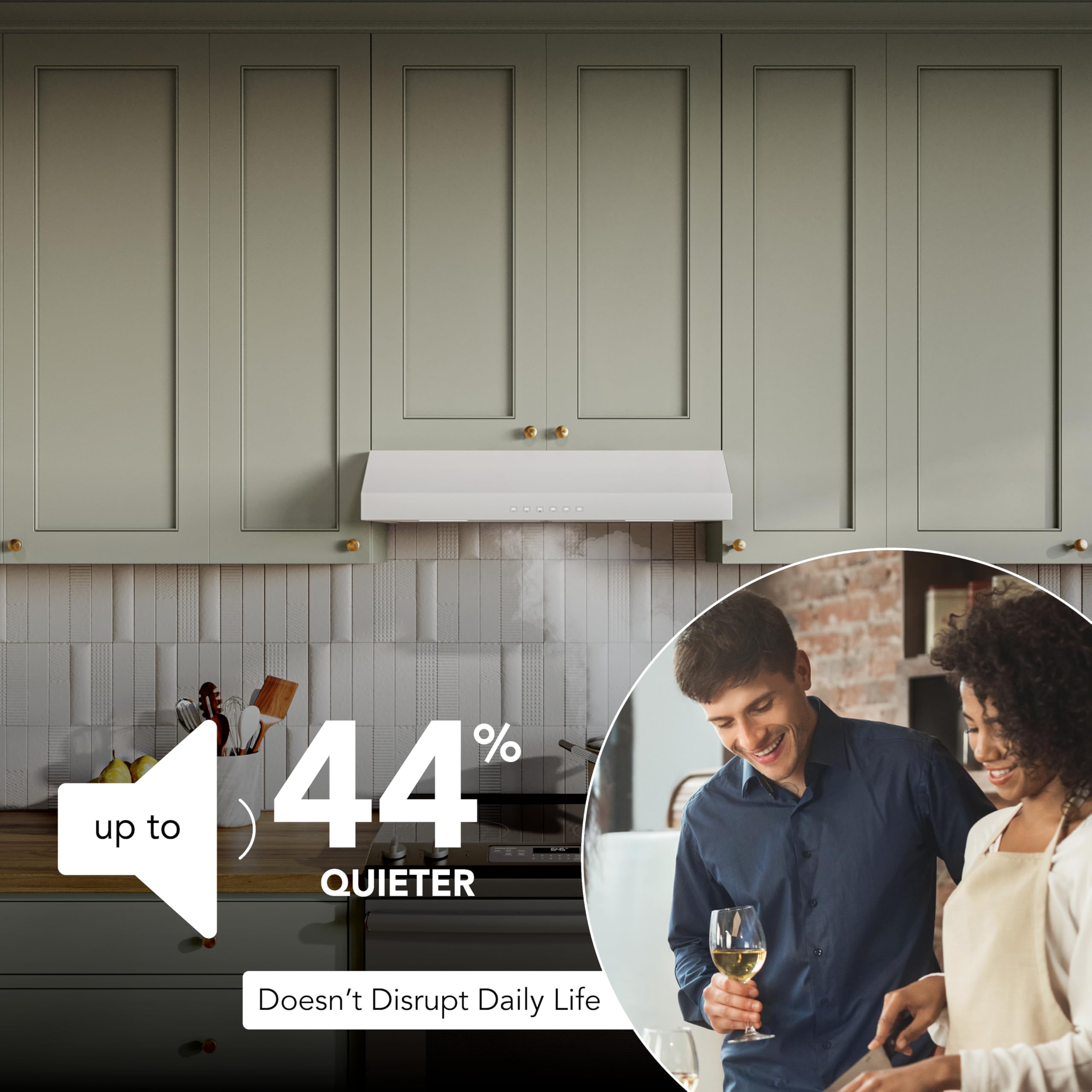 Up to 71% Quieter: With sound equivalent to a refrigerator running, this vent hood is up to 71% quieter than competition at 1.1 sones on working speed