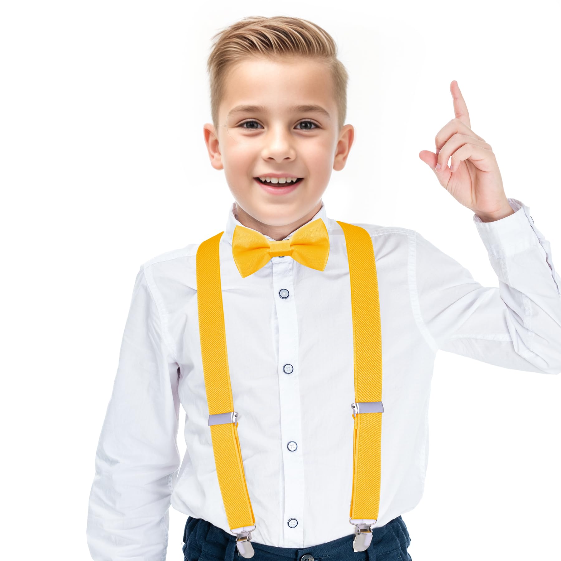 【BRIGHT COLORS】:we have multi classic color bow tie and suspenders, you can according to your outfits match with different color bow tie.our suspenders have clips,easy to dress, great for kids,teens.