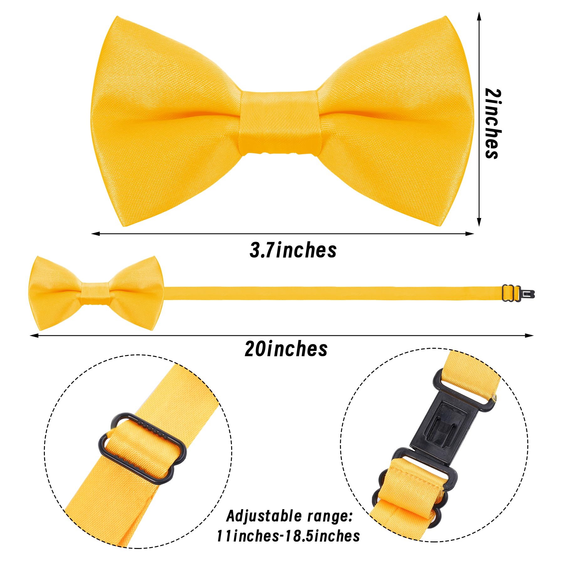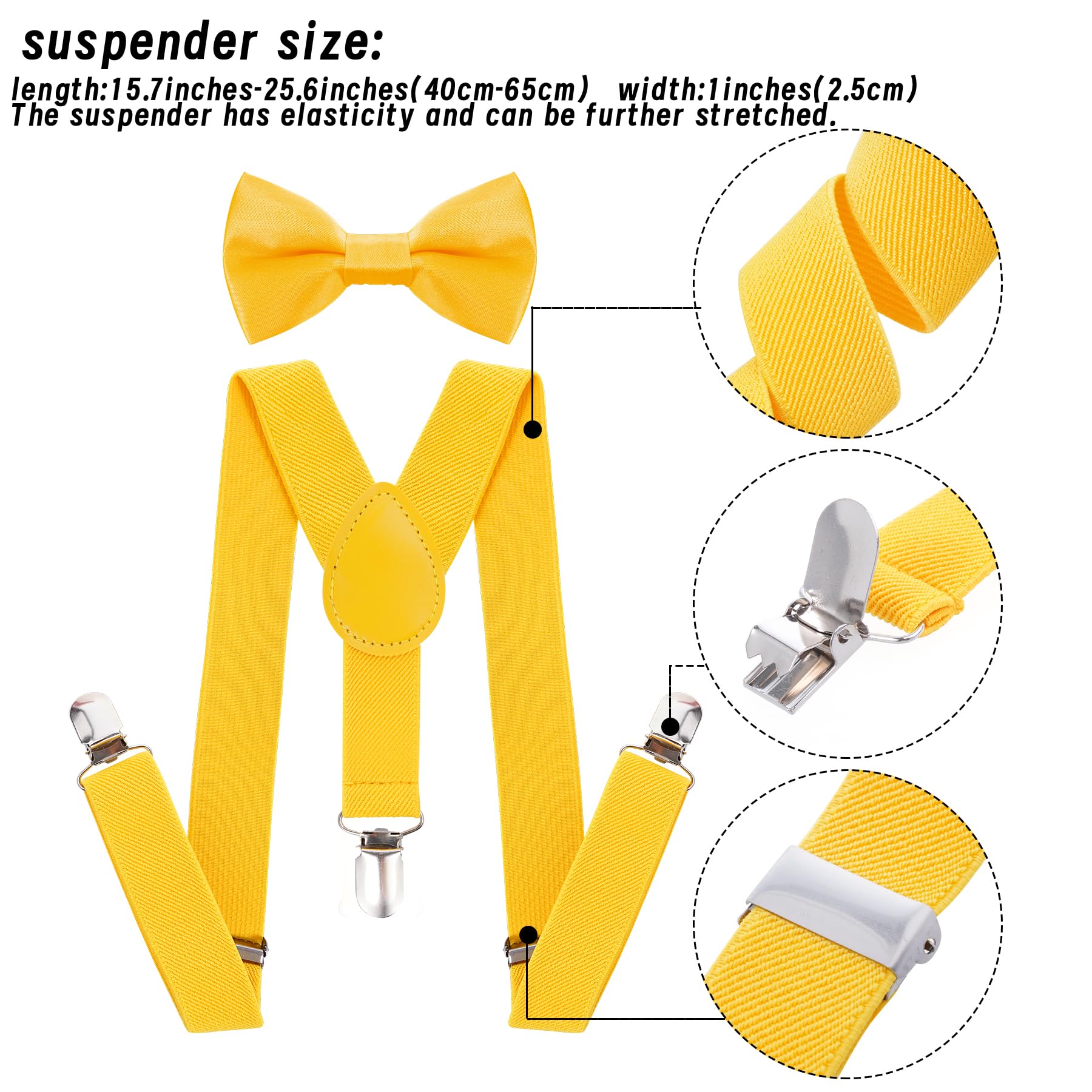 Description NOTE: 1.Hand Wash Only 2.It's manual measurement maybe with a little error, thanks for your understanding! 3.The display screen of each computer is different, so the color of this short maybe a little different from what you see. 4.If you have any questions, you can contact us anytime. our goals are making you satisfied. ADJUSTABLE SIZE: BOW TIE SIZE: 2inches in width, 3.7inches in length, it has an adjustable strap that can be adjusted from 11inches-18.5inches. SUSPENDERS SIZE: length:15.7inches-25.6inches, width:1inches,the suspenders has elasticity and can be further stretched. PRE-TIED BOW TIE our boys bow tie is designed with an beautiful pre-tied bow tie knot and easy to use hook. It's convenient for people who don’t know how to tie the exquisite knot and saving your time. our suspenders have clips,easy to dress, great for kids,teens APPLICABLE OCCASIONS The classic solid color bow tie is great for many occasions, such as everyday wear, dress up your kids for school, holiday party, cosplay, graduation, wedding.it's unisex bow tie, also suitable for men, teens, pets.