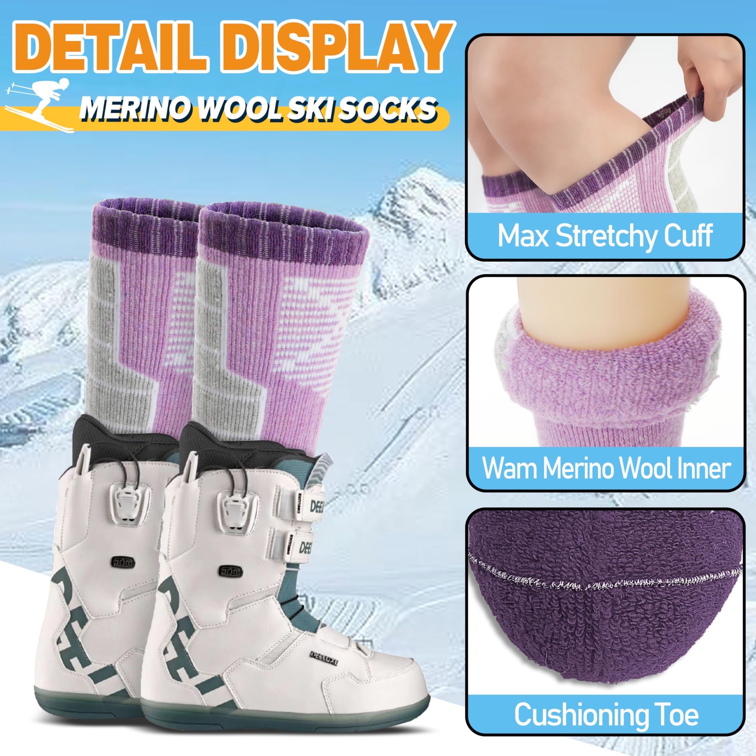 PACKAGE INCLUDED - Here are 3 pairs merino wool ski socks for kids.They are suitable for skiing, snowboarding, skating, hiking, running, gym class ,playing outdoor or other activities.