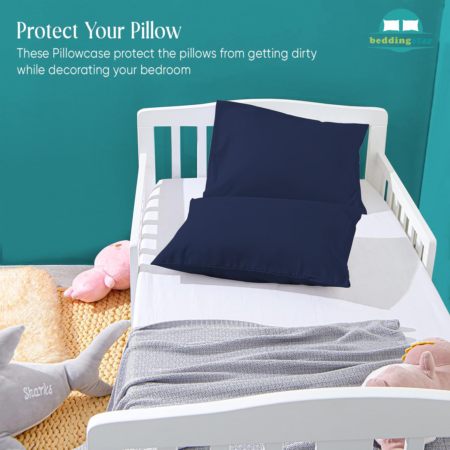Package Include:- 2 Piece Toddler Travel Pillow Case Cover 14 x 20 Size Navy Blue Solid Zipper Closure. (Pillows Are Not Included)
