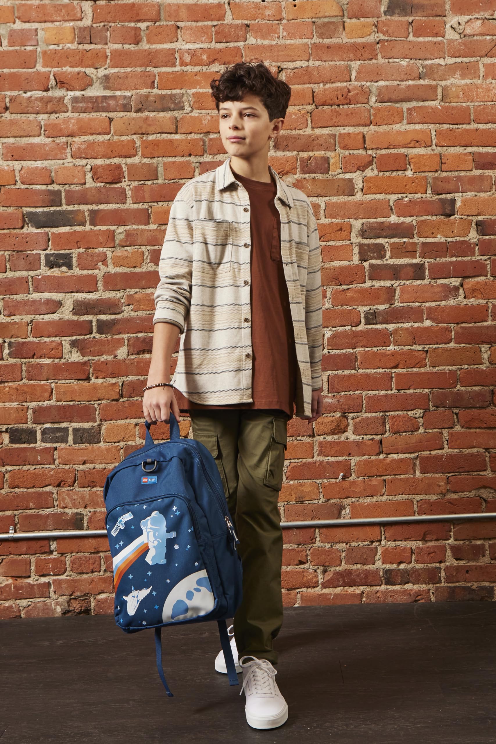 Description Gear up for city duty with the Heritage Classic Backpack. Boasting ergonomically padded contoured shoulder straps and a soft poly tricot lining, carrying is effortless and comfortable. The padded haul handle adds convenience for easy transport. Achieve balance with the adjustable front sternum strap, ensuring a secure fit with a simple click. Featuring a padded back panel detailed with LEGO brick stitch, comfort meets style seamlessly. Access essentials effortlessly with the roomy main zipper compartment and interior slip pocket designed to keep items close to the wearer's back for optimal weight distribution. Keep small supplies organized with the front volume zipper pocket's built-in organization panel. Stay hydrated on the go with the side mesh pocket designed to hold water bottles or quick-access items. Plus, the front D-ring offers a convenient attachment point for lunch bags or additional belongings. Measuring 16” (40.6cm) high, 11” (28cm) wide, and 6.5” (16.5cm) deep, it provides ample space for books, snacks, and more. Select from a variety of designs to flaunt your LEGO flair and express your individuality with our City Heritage Classic Backpack. Note: Matching Lunch Boxes are available separately to complete your ensemble.
