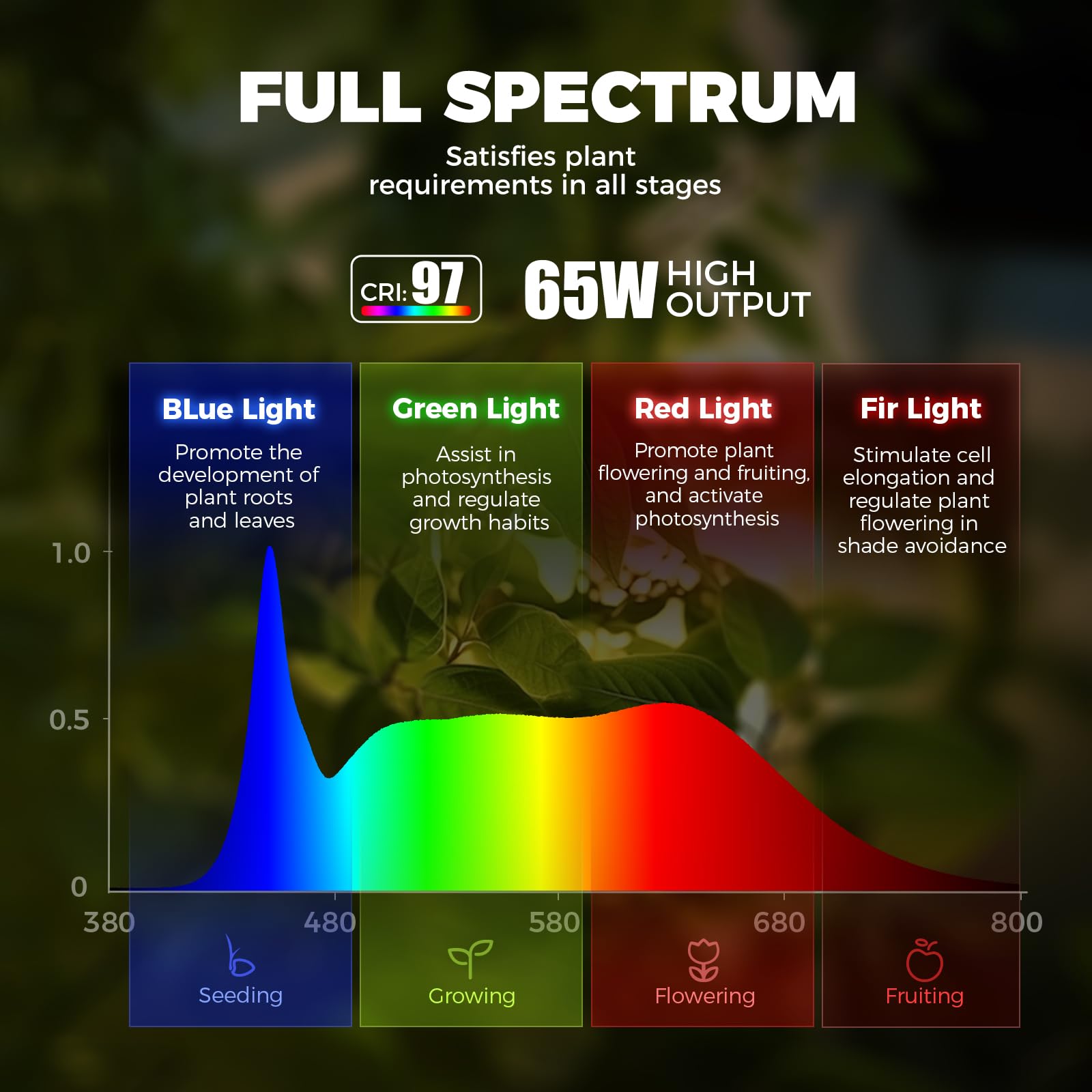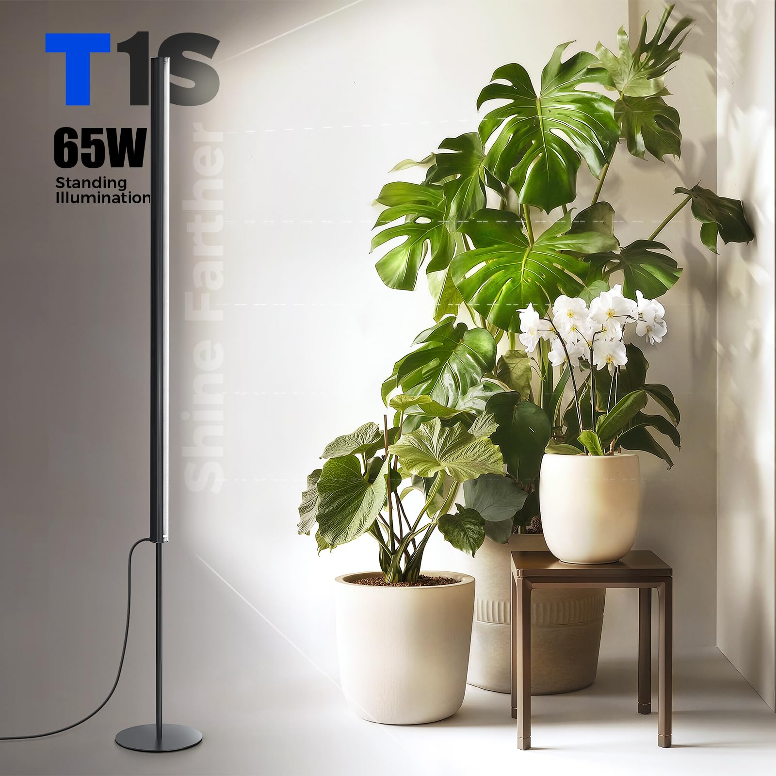 Low-Glare Side Illumination with CRI 97 : Designed for dual use, T1S combines functional plant lighting with comfortable brightness. Its 45° non-glare design and side illumination technology minimize eye strain when viewed from the side, while high CRI ensures color rendering—brightening living spaces without harsh glare