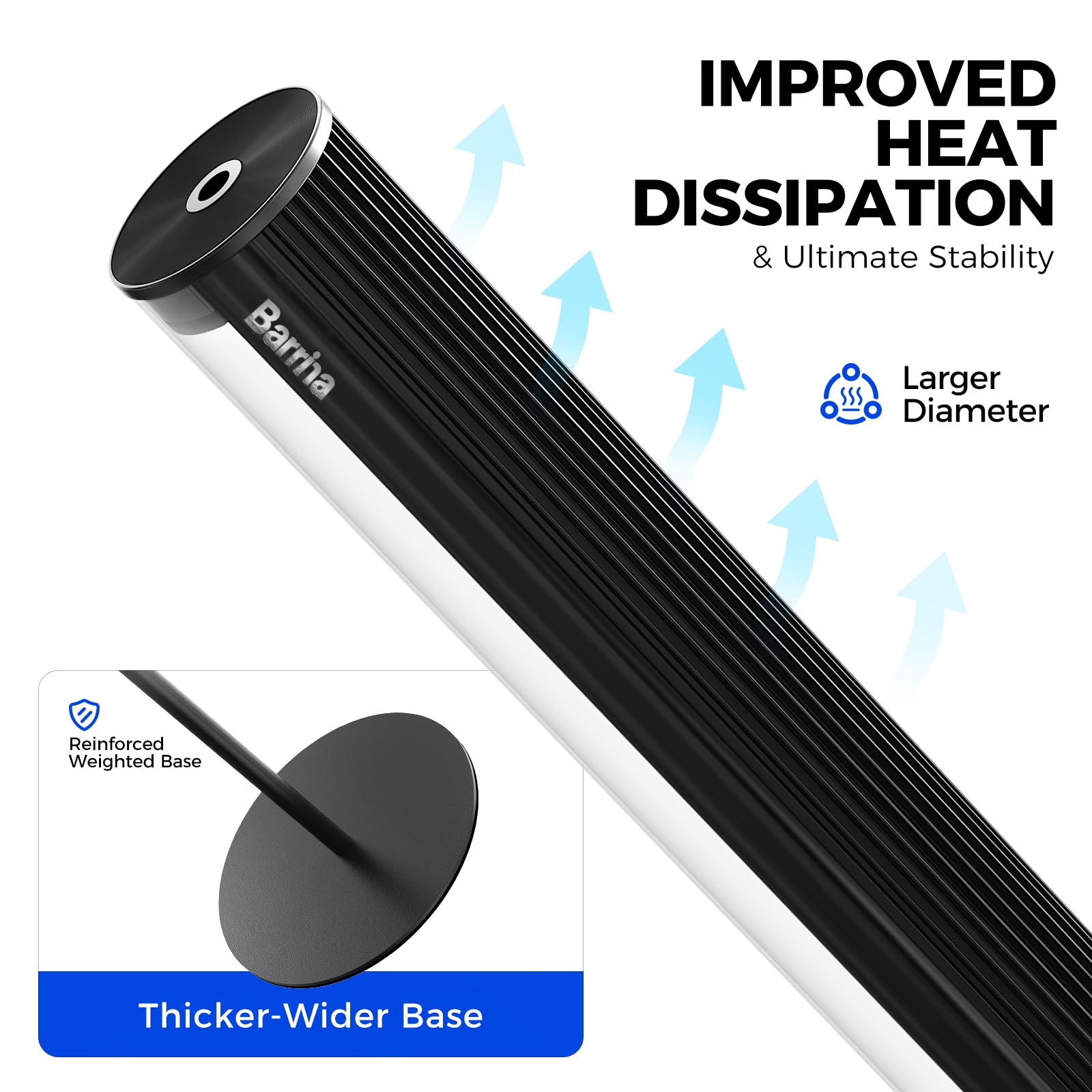 Black & Silver Design for Home:Barrina T1S Vertical plant light prioritizes stability and durability. The thicker round base and wider lamp diameter enhance heat dissipation, while aluminum construction ensures long-term performance
