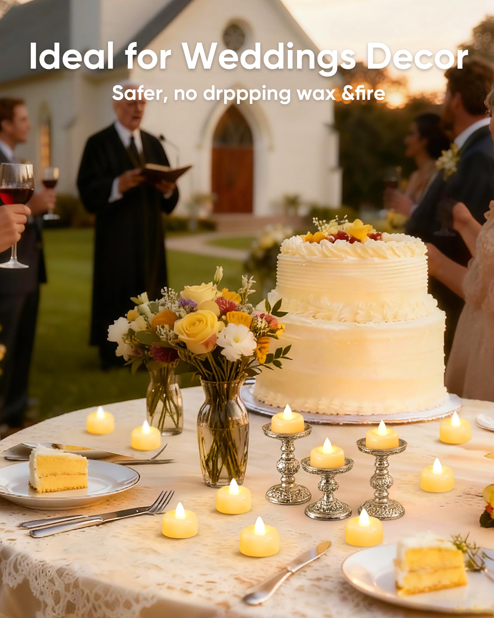 ADD ATMOSPHERE: These LED flameless tealight candles can be placed on the dining table or in the room to add a warm atmosphere, electric tealight candles can also be decorations during weddings, proposals, Halloween, Christmas, Holidays, or important occasions