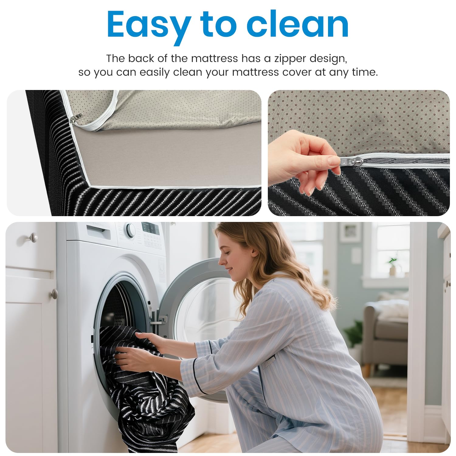 【Intelligent Dynamic Support System】The full mattress utilizes high-density slow-rebound foam to actively adapt to your body's curves, precisely distributing pressure points across the shoulders, waist, and hips. The elastic support layer responds to changes in sleeping position, keeping the spine naturally straight and minimizing the distraction of tossing and turning, effectively alleviating morning back pain.