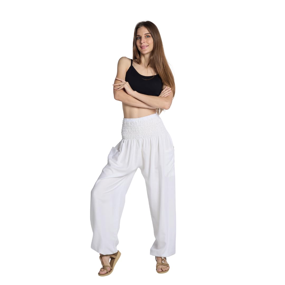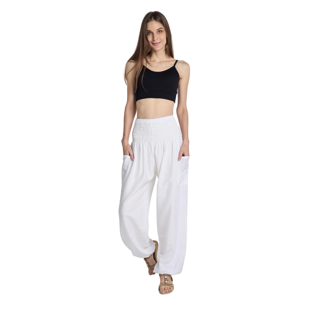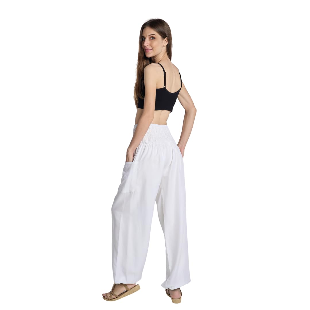 COMFORTABLE: Baggy fitting & flattering in all the right places, our high rise harem pants for women have a slimming smocked waist & stretchy elastic at the ankles. Wear the them as tummy control yoga bottoms, pajama, dance pants & much more