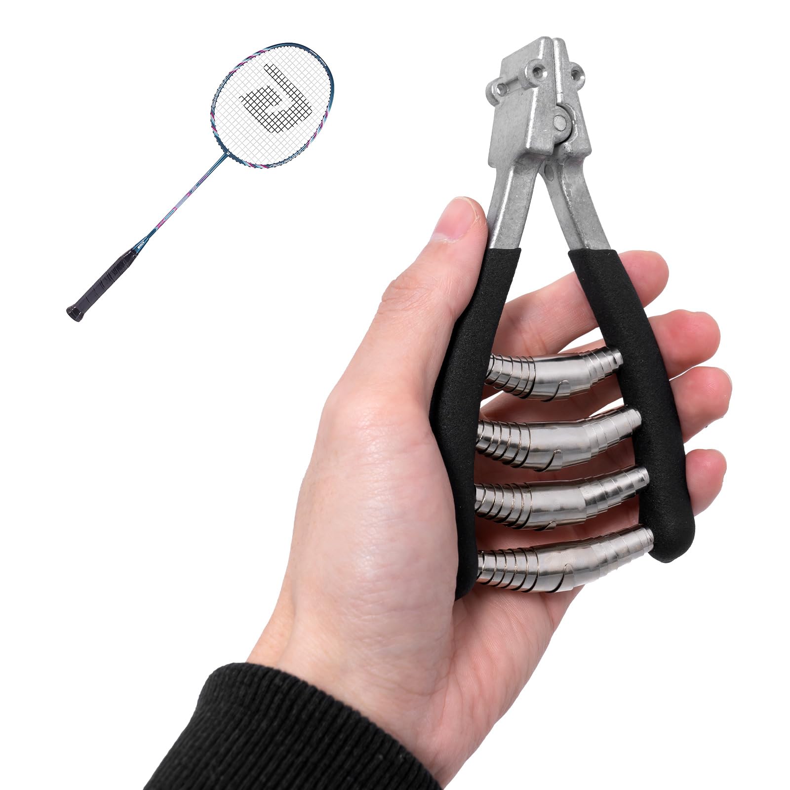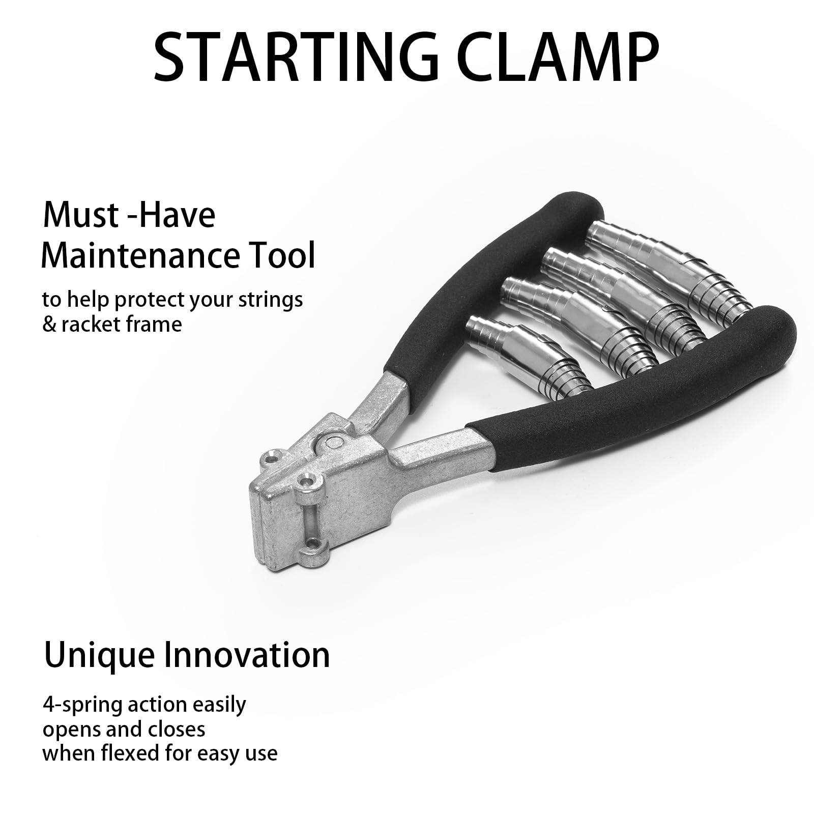 Superior Clamping Force: The innovative four-spring design provides enhanced clamping strength, securely holding racquet strings in place