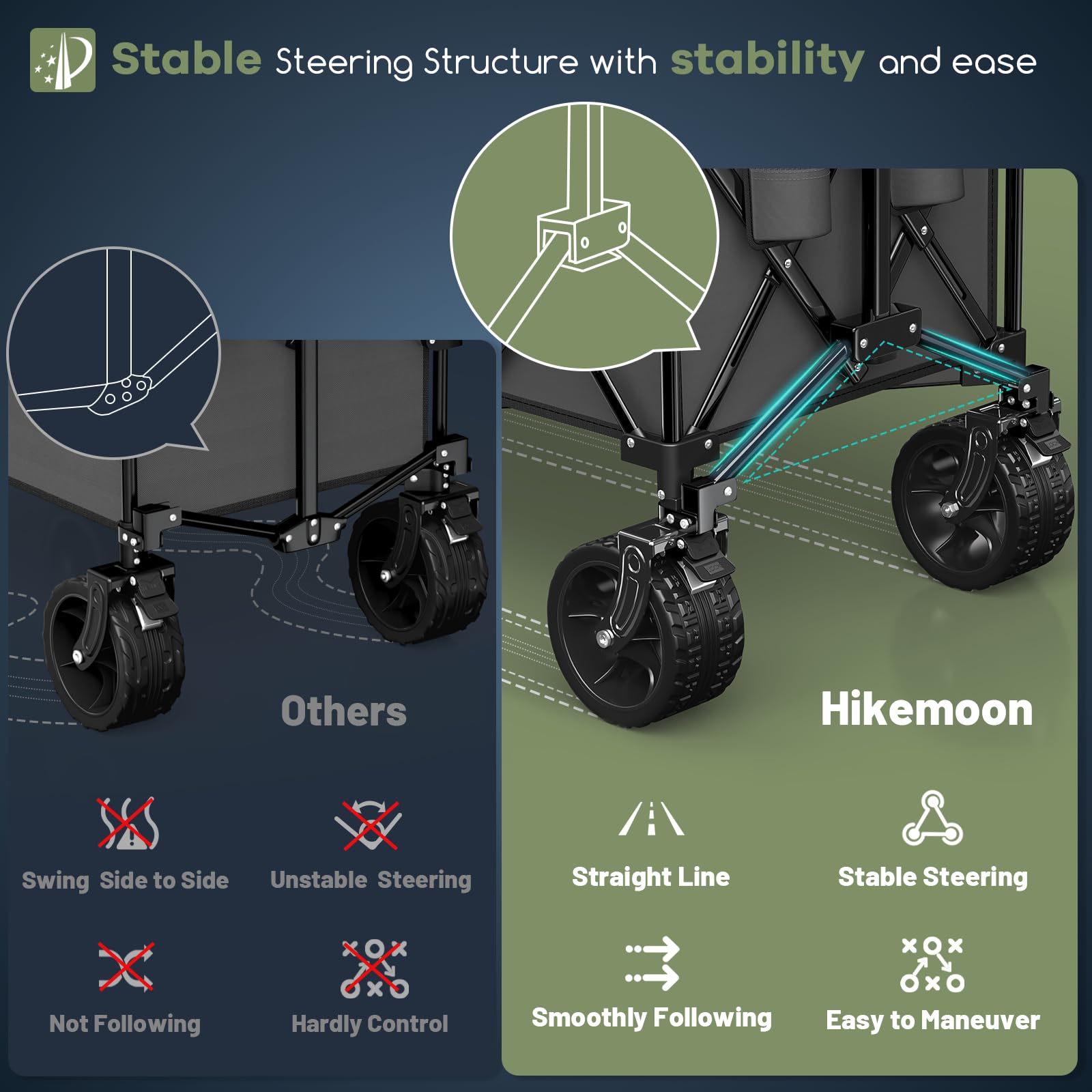 ใ๐๐๐ยฐ ๐๐ข๐ฅ๐๐ง๐ญ ๐๐ข๐ ๐๐ฅ๐ฅ-๐๐๐ซ๐ซ๐๐ข๐ง ๐๐ก๐๐๐ฅ๐ฌ ๐๐ฉ๐ ๐ซ๐๐๐๐ ๐๐ญ๐ข๐ฅ๐ข๐ญ๐ฒ ๐๐๐ ๐จ๐ง - ๐๐ฆ๐จ๐จ๐ญ๐ก๐๐ซ ๐๐จ๐ฅ๐ฅ๐ข๐ง๐ ใ: The collapsible wagon has large all-terrain wheels (7" x 4") and 360ยฐ swivel front wheels. Dual front brakes prevent the wagon from sliding. Built-in double bearings ensure smoother rolling over mud, grass and gravel. It is also a beach wagon with big wheels for sand. It is quiet, shock-absorbent and wear-resistant for beach, shopping, lounge, grocery, garden, picnics, camping, sports, fishing and concerts.