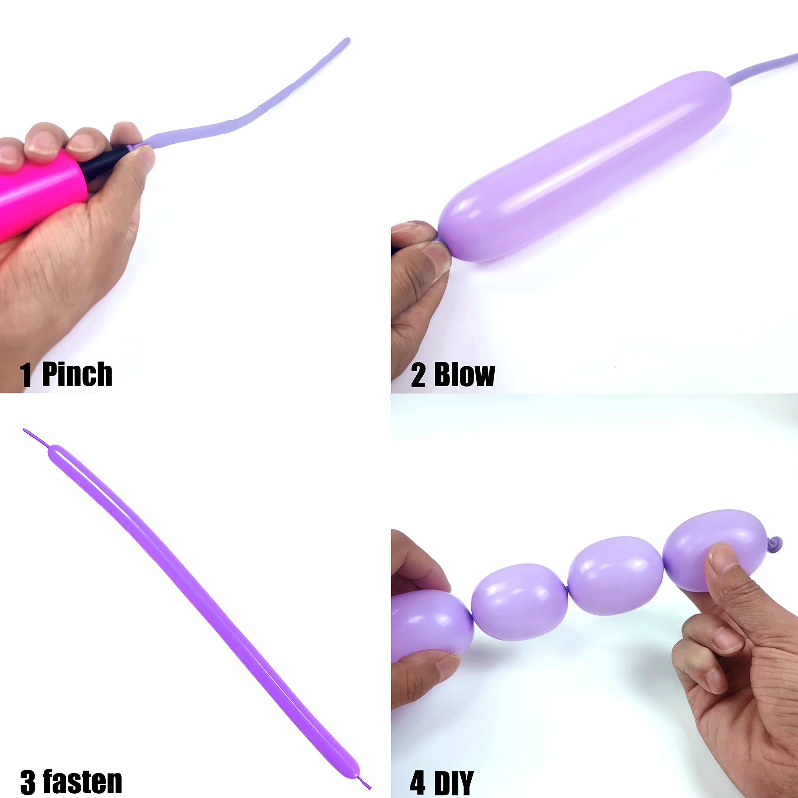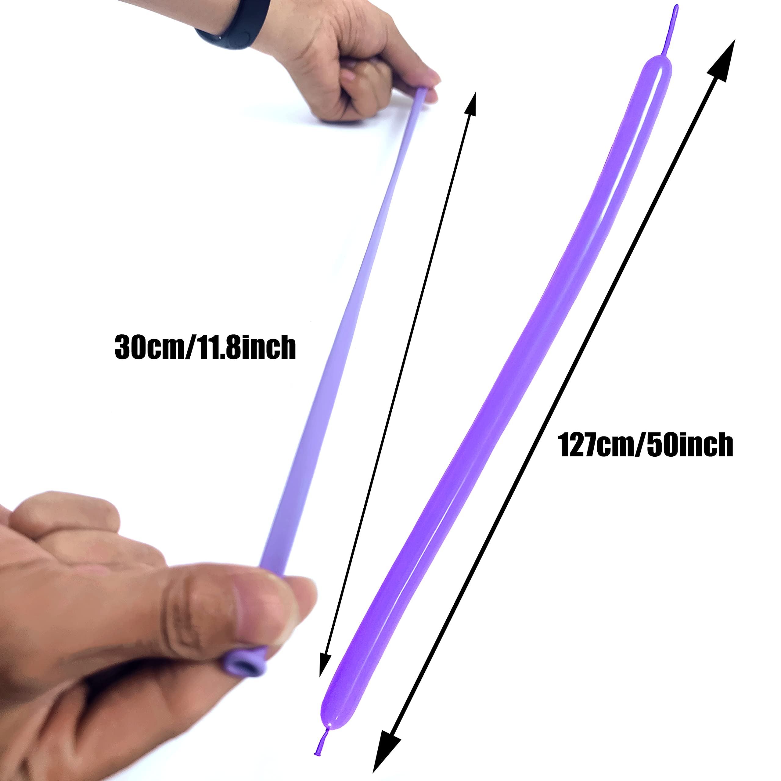 BALLOON ANIMAL BALLOONS: The length of the twisty balloon is 12.5 inches, and it can be inflated to 47-53 inches. It can be easily inflated with balloon pump or an electric pump.