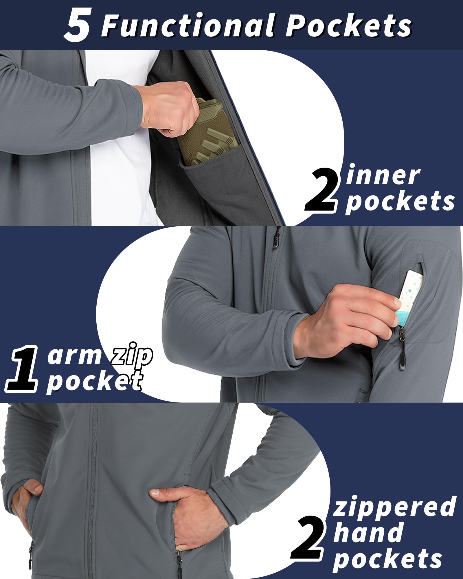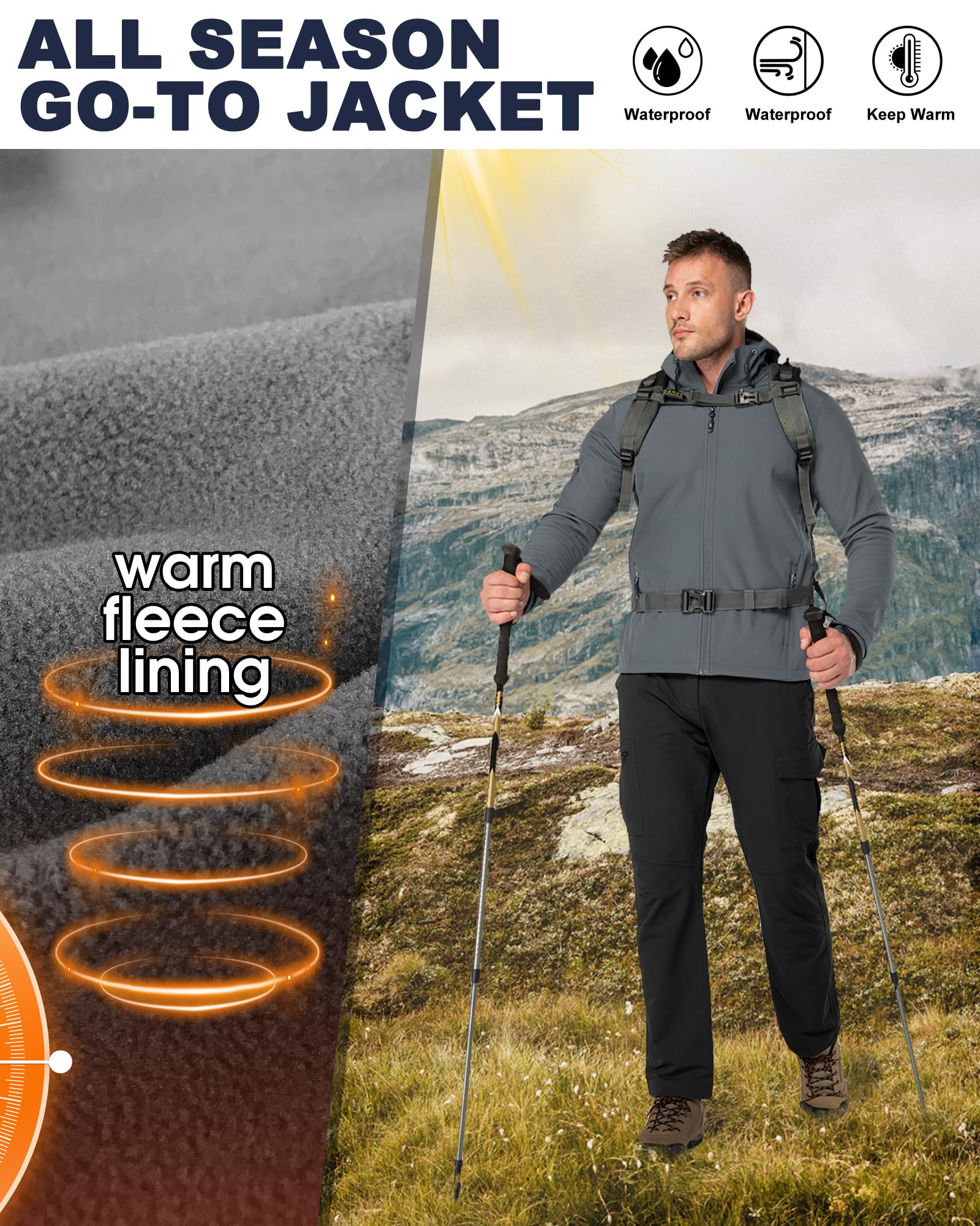 【WARM FLEECE LINED JACKET】33,000ft men's fleece lined soft shell jacket gives you additional thermal insulation and superior moisture-wicking performance. The brushed fleece lining is soft to the touch and keeps you comfortable and cozy.