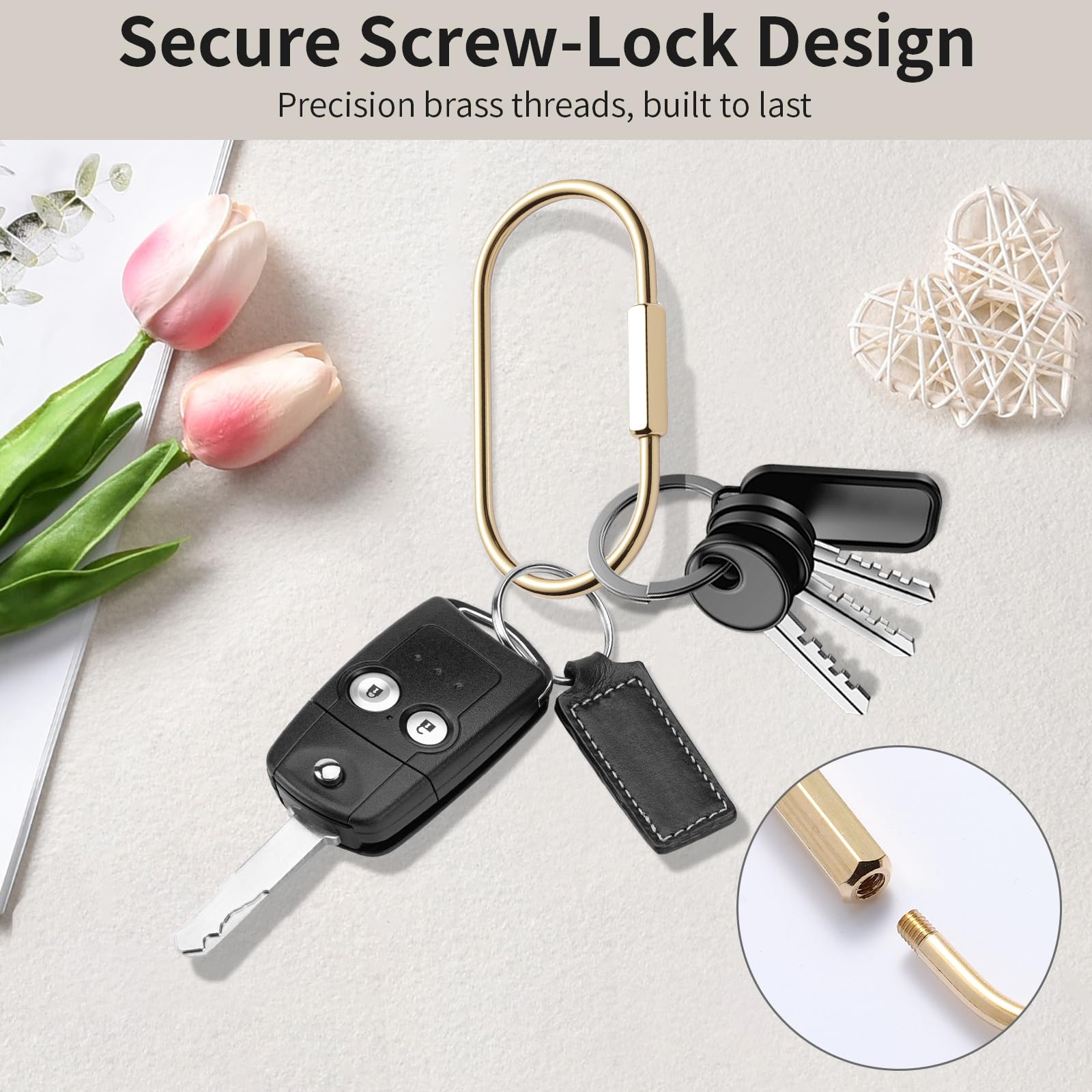 【Secure Screw Lock Design】This brass screw lock carabiner keychain provides reliable protection, preventing keys and bag charms from falling off during travel or daily carry, ideal for car keychain, key organizer, and outdoor use.
