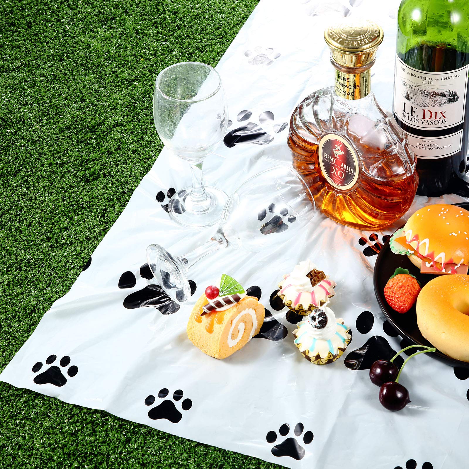 Dog birthday decor: 2 pcs dog paw print tablecloths, these adorable puppy party table covers are suitable complement for many puppy themed party decorations, bring a fun touch to your kids' birthday decor