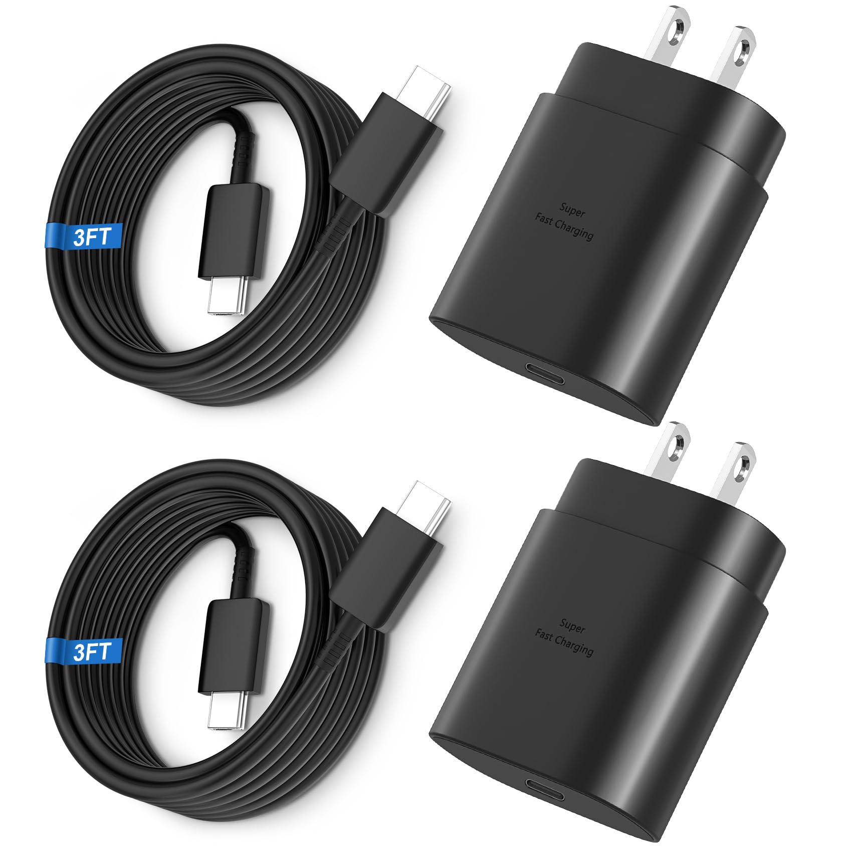 What's in Package: 2x 25W USB C fast charger blocks and 2x long 3FT USB C fast charging cables.