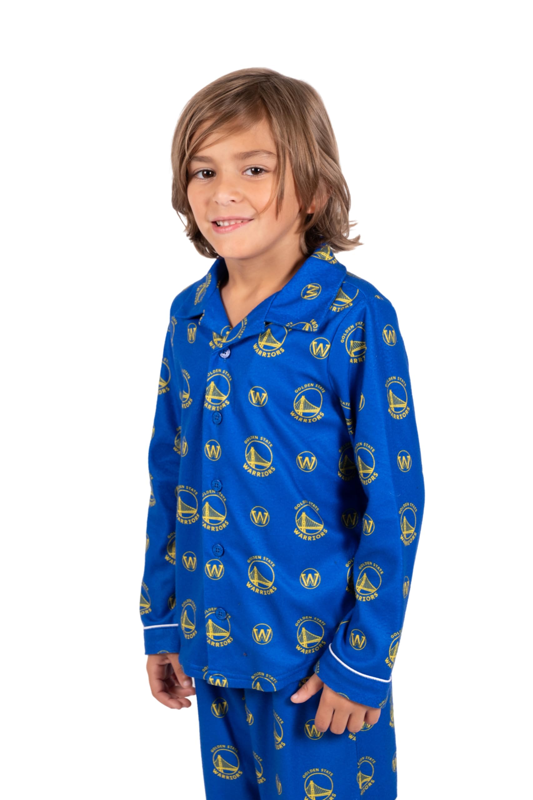 Description Ultra Game NBA Apparel, officially licensed by the NBA, boasts creative designs with modern graphics and textures. Enjoy a relaxed fit: the top and bottom are roomy, ensuring all-night comfort and longevity as your child grows. This stylish set features a button-up shirt, elastic-waist pants, and an all-over print of your favorite NBA team's primary and secondary logos. The top and bottoms are crafted from a soft, warm double-brushed polyester material.