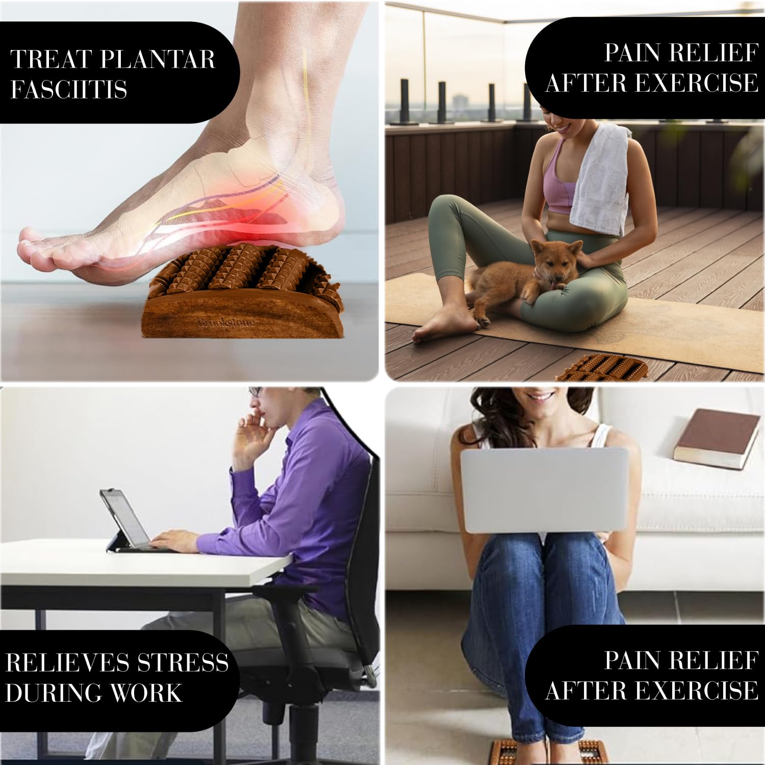 Foot Massager for Circulation: Enhance circulation and pain relief with our foot massager for plantar fasciitis relief. This wooden foot massager roller is expertly crafted to stimulate reflexes, providing a soothing foot massager for circulation and pain relief for wide feet.