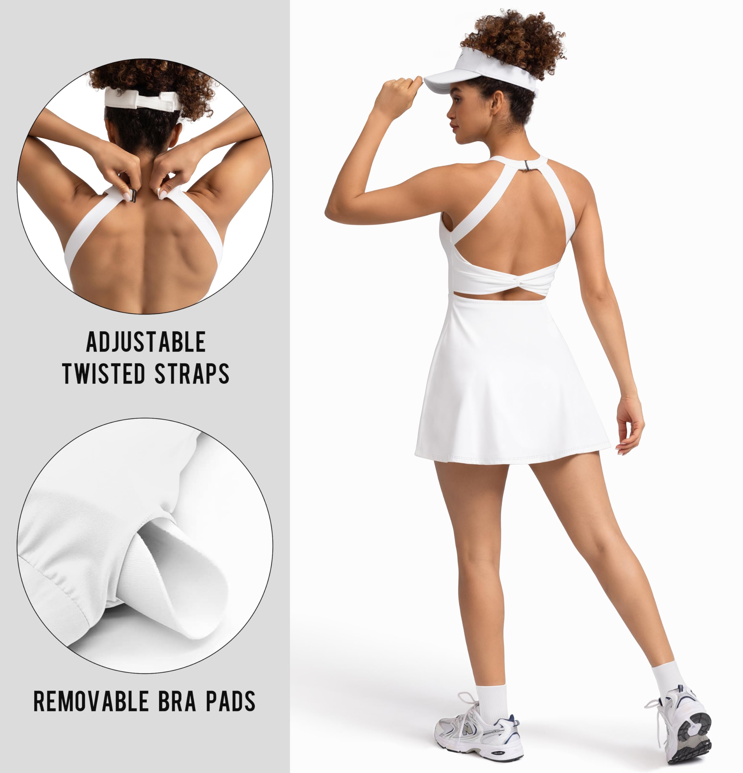 Description Womens Activewear Tennis Dress - Built in Shorts with Pockets and Bra Golf Athletic Workout Dresses