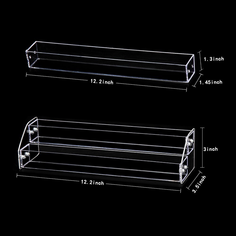 With Icefire Acrylic Makeup Nail Polish Rack, Keep Your Desktop in Tidy and Clear Way! 1.Icefire acrylic nail polish organizer or use as display rack stand, station,essential oils holder case,to storage and organize Eye Shadow Gel or Liner,Mascara,Concealer,Hair Color,Concealer,Facial Mask or Face Masque,Enamel Paint or Tie Pin,Balm Cream,Eyelash,Lippie or Lip Gloss,Brush,Manicure or Pedicure,Lotion,Toner,Cash,Coins,Comb,Brow Powder Puffs or Blush Pencil,makeup, jewelry,nail polishes remover,essential oils, vapor e juice, Earring,Clips,Money,liquids,dropper or spray bottles,cosmetic makeup, mini toy, candy and other small size gadgets and commodity goods in clean and tidy way 2. 2 Sets 2 Tiers clear color acrylic material display holders & racks & shelves 3. Space saver rack for grocery store, makeup cosmetic desktop,dresser, shop, and bathroom,reception desk,kitchen,office,etc,samples display stands in trade show fair 4.24.6 x 3.6 x 3.2 inches,maximum holds up to 72 bottles(5ml) or 48 bottles(10ml), or 40 bottles(30ml) 5. Slot Space fit for most of 5ml,10ml,15ml,20ml,30ml and 40ml liquids bottles What This Icefire Acrylic Display Stands & Nail Polish Organizer Carrying Box Case & Brochure Holders can brings to you? 1. Keeps your essential oils and liquids items in one place,easy to get and use it. 2. As a gift to your best friend or ladybro or neighbor,girlfriend,mother. 3. To save your precious space,easy to clean and maintenance. 4. To display your goods in the show holder in your shop or trade fair show, with better view angle. 5. Change your disorganized desktop with this tidy and clean organizer. Package Includes? 1. 2 Sets 2 Tiers Acrylic essential oils display organizer Clear Plastic Acrylic Material. 2. 1 years warranty time! damaged by shipping, Free replacement.