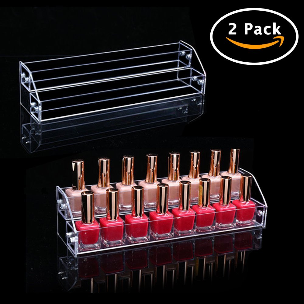 ❤ 2 sets of 2 tiers acrylic makeup nail polishes organizer or essential oils display stand, nail polish display rack,spray or dropper bottles holder, acrylic paint oils organizer,or essential oils display shelf,lipstick,roller bottle.Good for Tie Pin,Balm Cream,Eyelash,Lippie or Lip Gloss,Brush,Manicure or Pedicure,Lotion,Toner,Cash,Coins,Comb,Brow Powder Puffs or Blush Pencil,Cosmetics makeup,jewelry.Made of clear plastic, durable plastic materials,easy clean and maintenance.