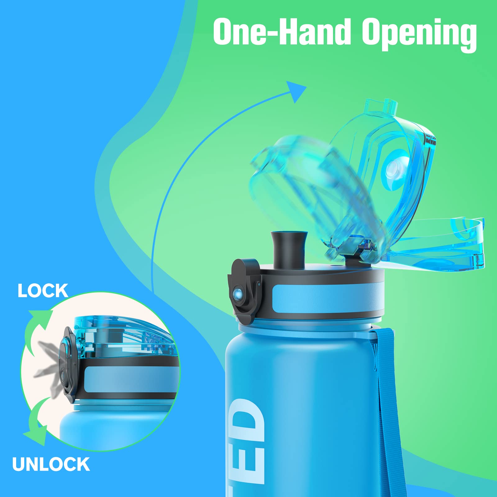 Easy Open yet Leakproof: this water bottle features a leakproof lid with a flip-lock to avoid leakage when you throw it in your bag. the lid adapts a flip-up mechanism so you can open it easily with only one hand and one press