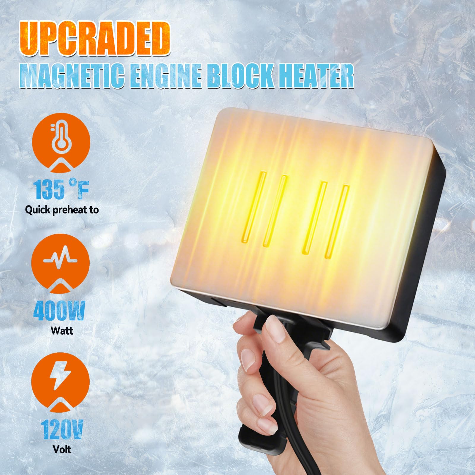 Durable Construction: magnetic engine heater is constructed from robust materials and featuring a practical handle for heat protection and comfortable handling, this heater is built to last. Its powerful magnetic base and heat-resistant design ensure reliable performance, keeping the heater securely in place and operating efficiently even in challenging environment