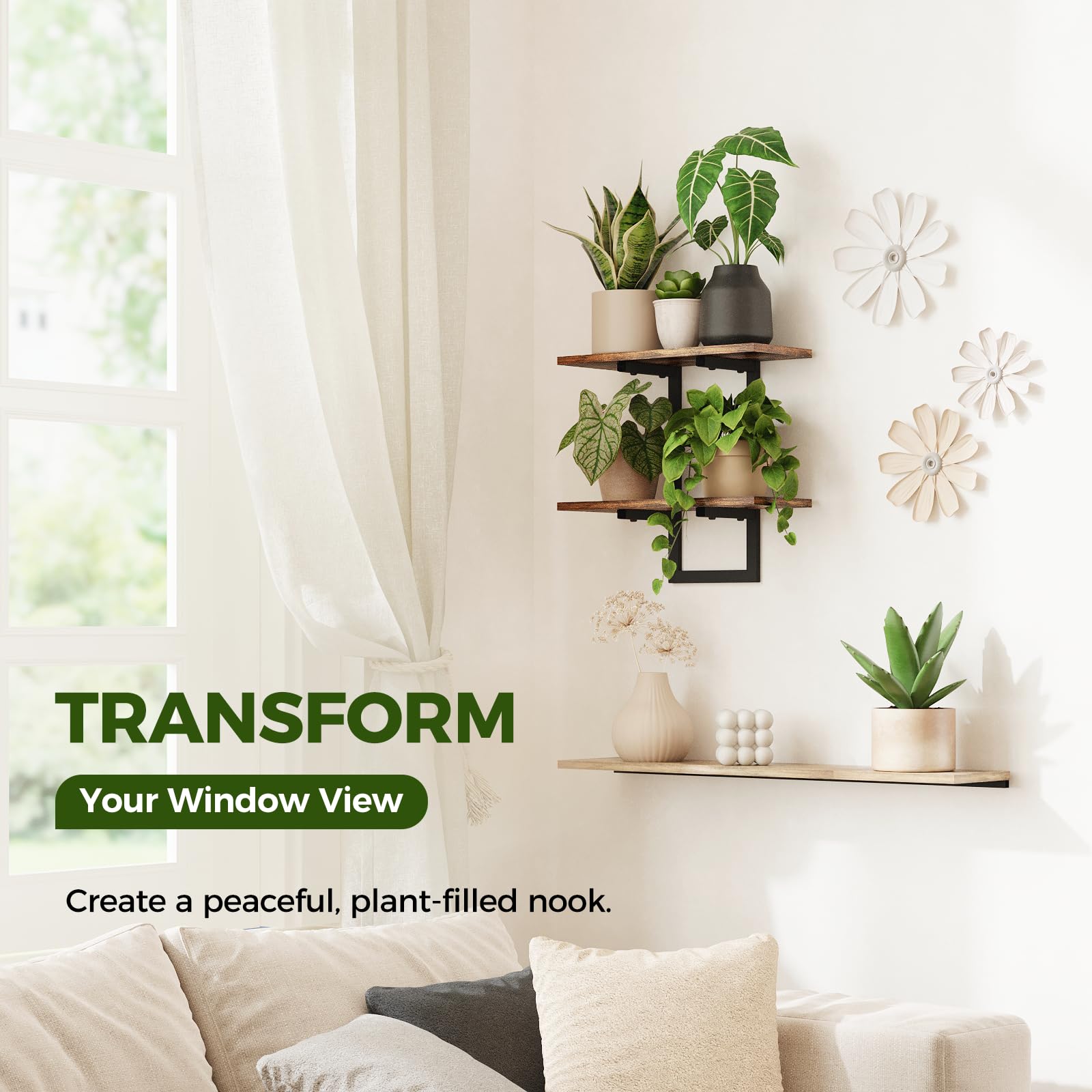 Stylish & Functional Design: The brown finish of these plant wall shelves adds a touch of warmth to any room. Whether used as plant holders or decor shelves, they blend seamlessly with modern, rustic, or bohemian interiors