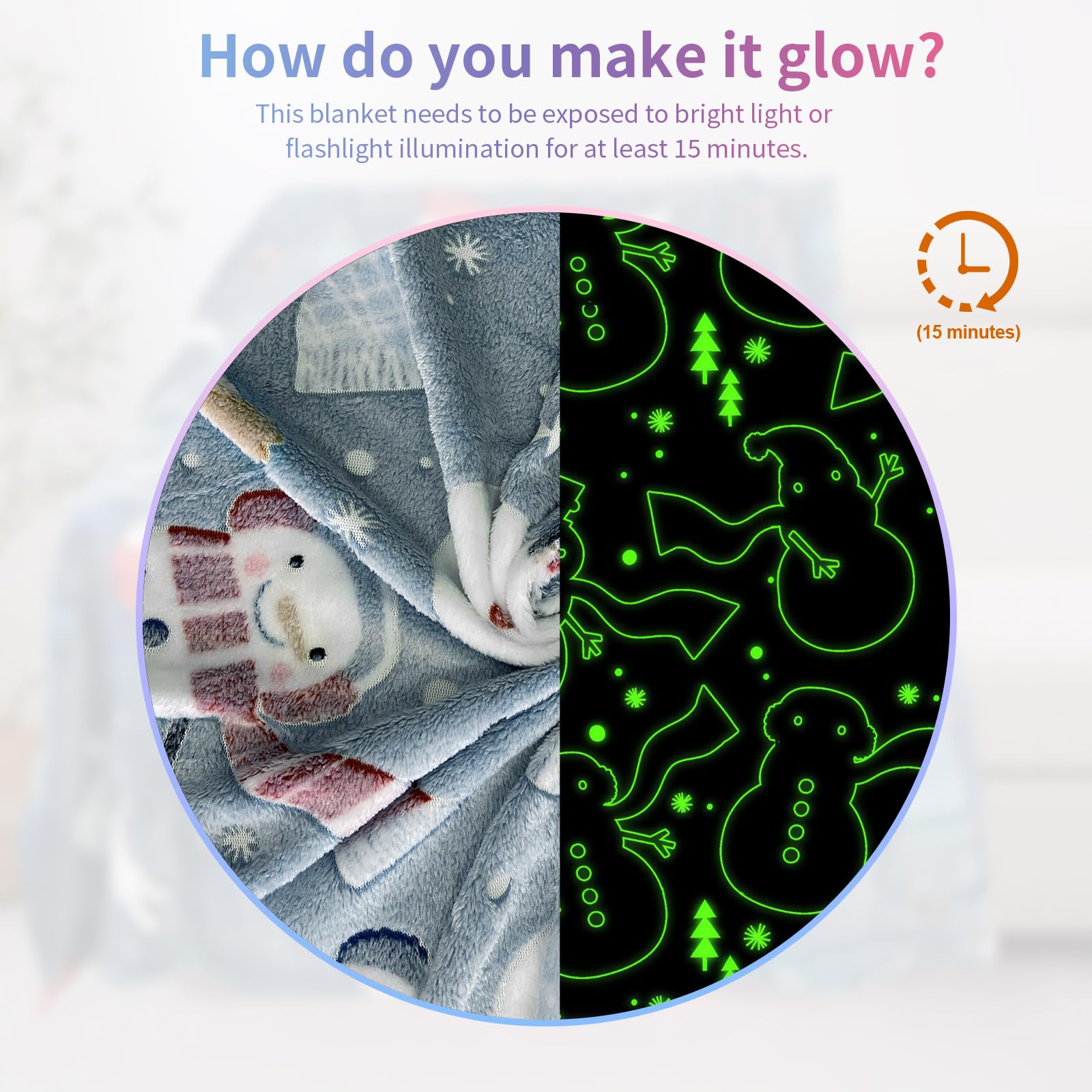Glow in the Dark Blanket: Our glows in the dark christmas blanket, simply expose the christmas blanket to bright light for 15 minutes, then turn off the light and magical things will happen.