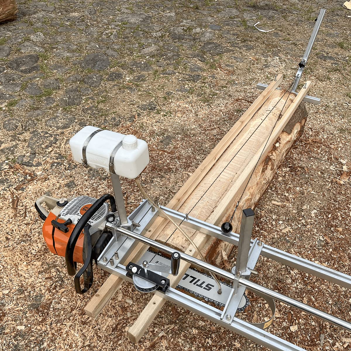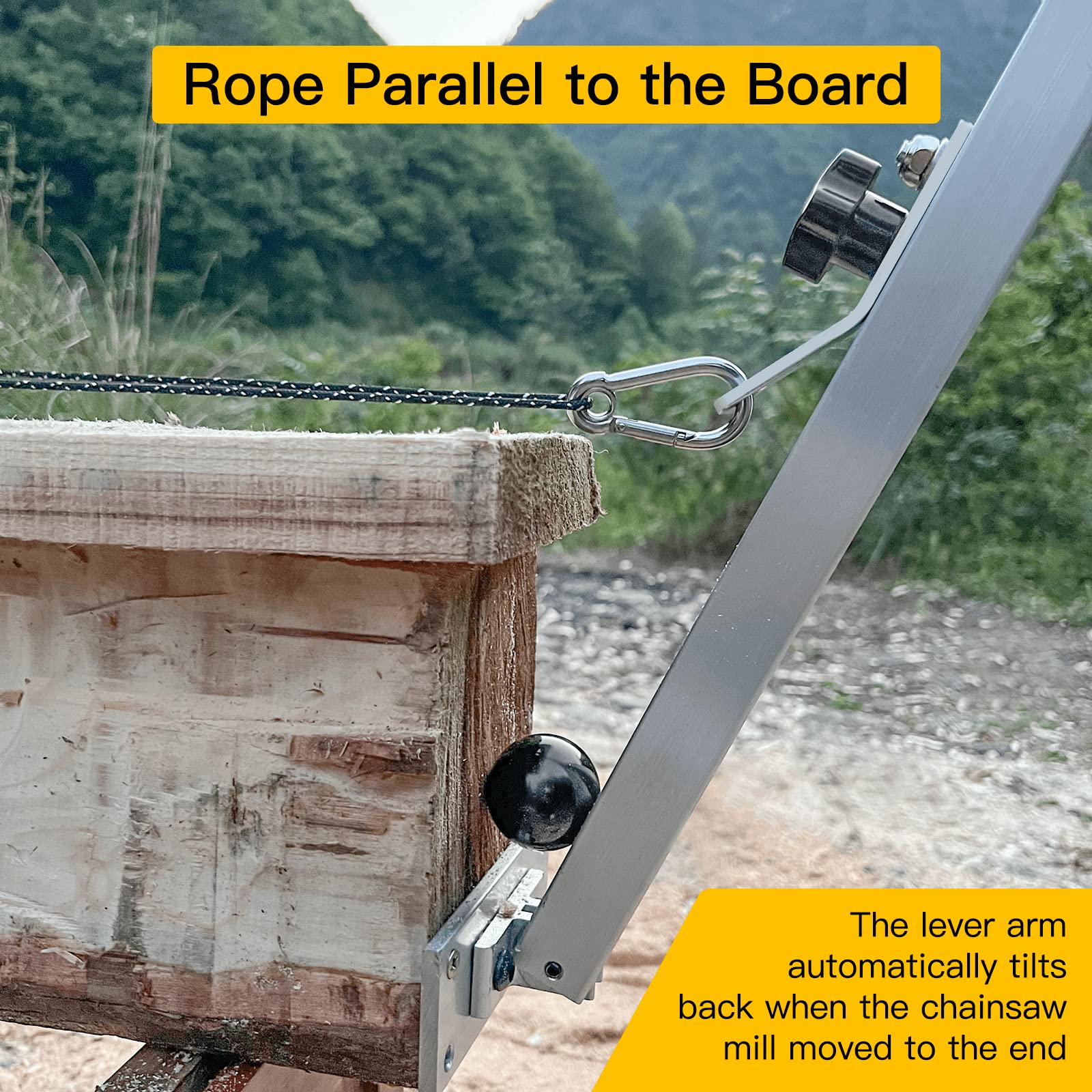 Upgraded Lever Arm: We've worked with Sawcoo to upgrade the lever arm. When the portable chainsaw mill is moved to the end of the log, the lever arm automatically tilts back, avoiding the risk of damaging the chain.