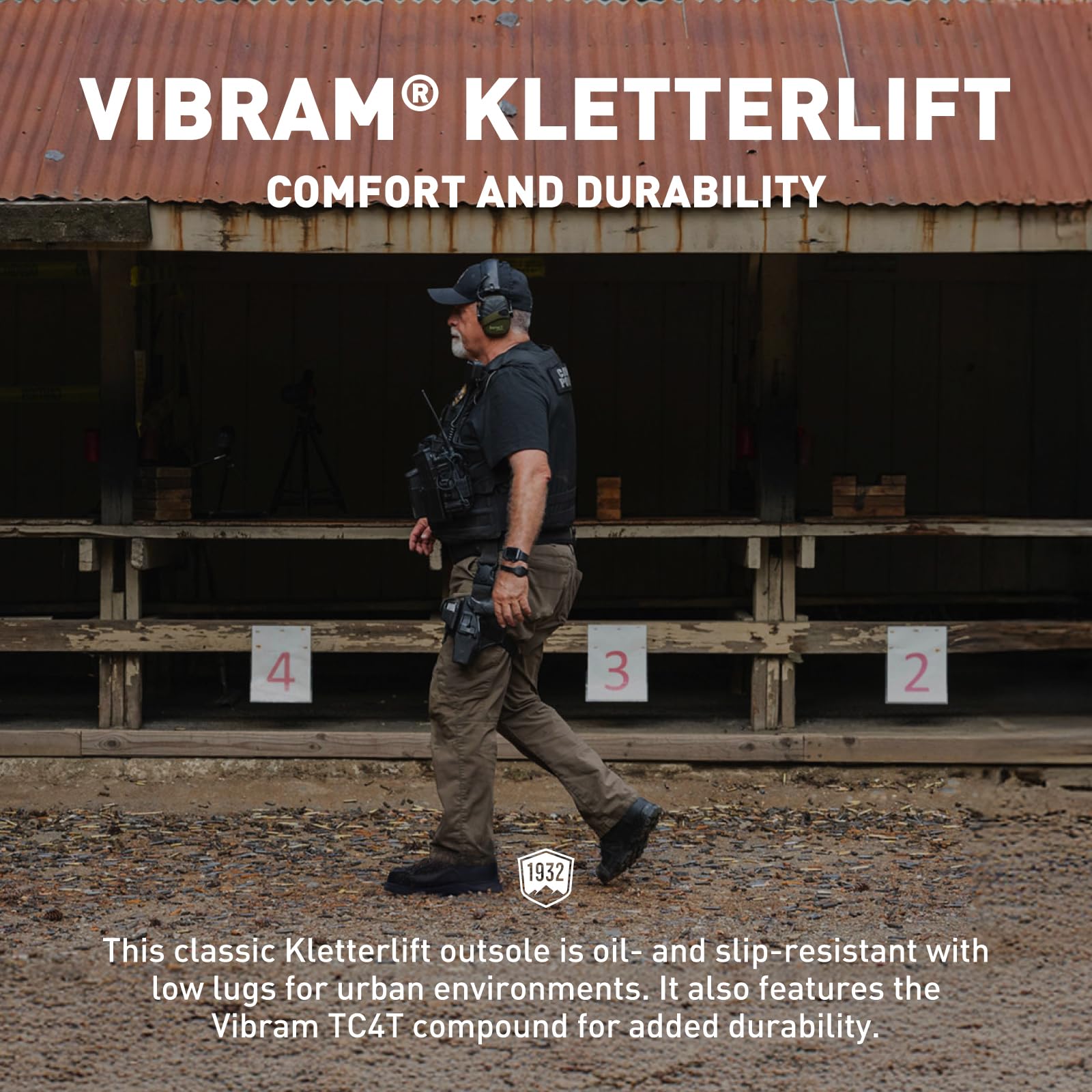 SLIP-RESISTANT OUTSOLE: these black tactical boots have a Vibram Kletterlift outsole that provides superior surface contact and traction, both oil- and slip-resistant