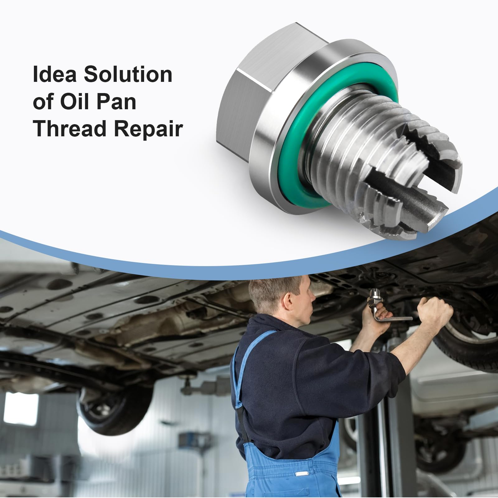 The Ideal Solution - While various thread repair tools like Helicoil or self-tapping bolt and drain plug repair kits are available in the market, they present risks and challenges. Repairing the oil pan thread using these tools requires careful alignment of the tap perpendicular to the oil pan before cutting new threads, or it may result in oil leakage. However, with our piggyback oil drain plug, fixing your slipped oil pan thread is a breeze, involving just a few simple steps.