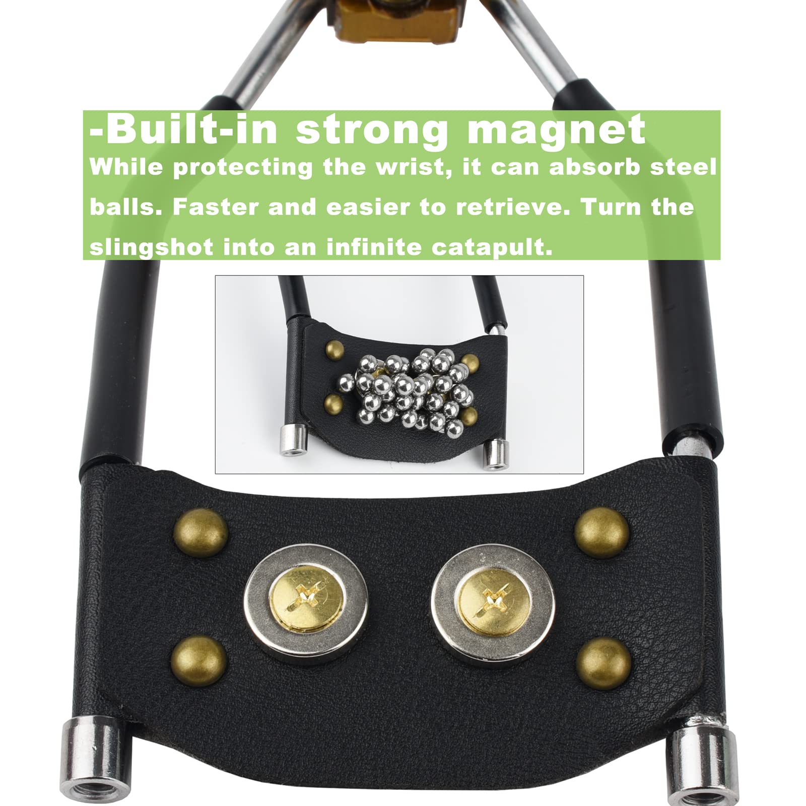 √Reliable Hand Support. When fishing or hunting, the support arm adds extra stability. The wrist brace protects your hand while standardizing operating gestures. It also keeps the line from getting tangled, making fishing easier. There are two magnet tabs on the leather hand guard to hold steel balls (NOT included) for ease of use.