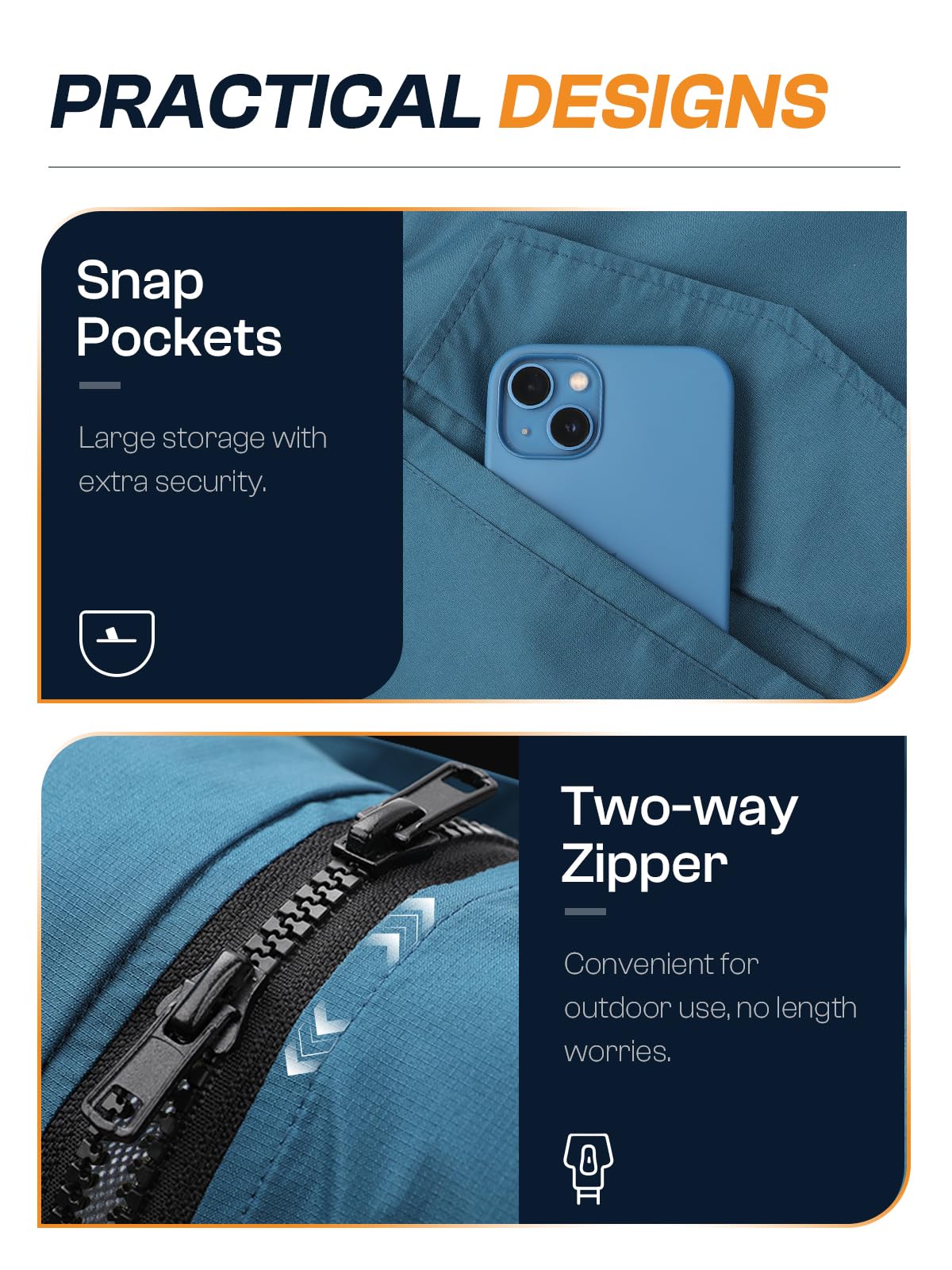 【More Coverage】: Length over 42" for knee coverage, adjustable large hood, and snap storm flap add more protection when outdoor. Meanwhile you don't need worry about moving: two-way zipper/slit hem design allows you flexibility to move around.