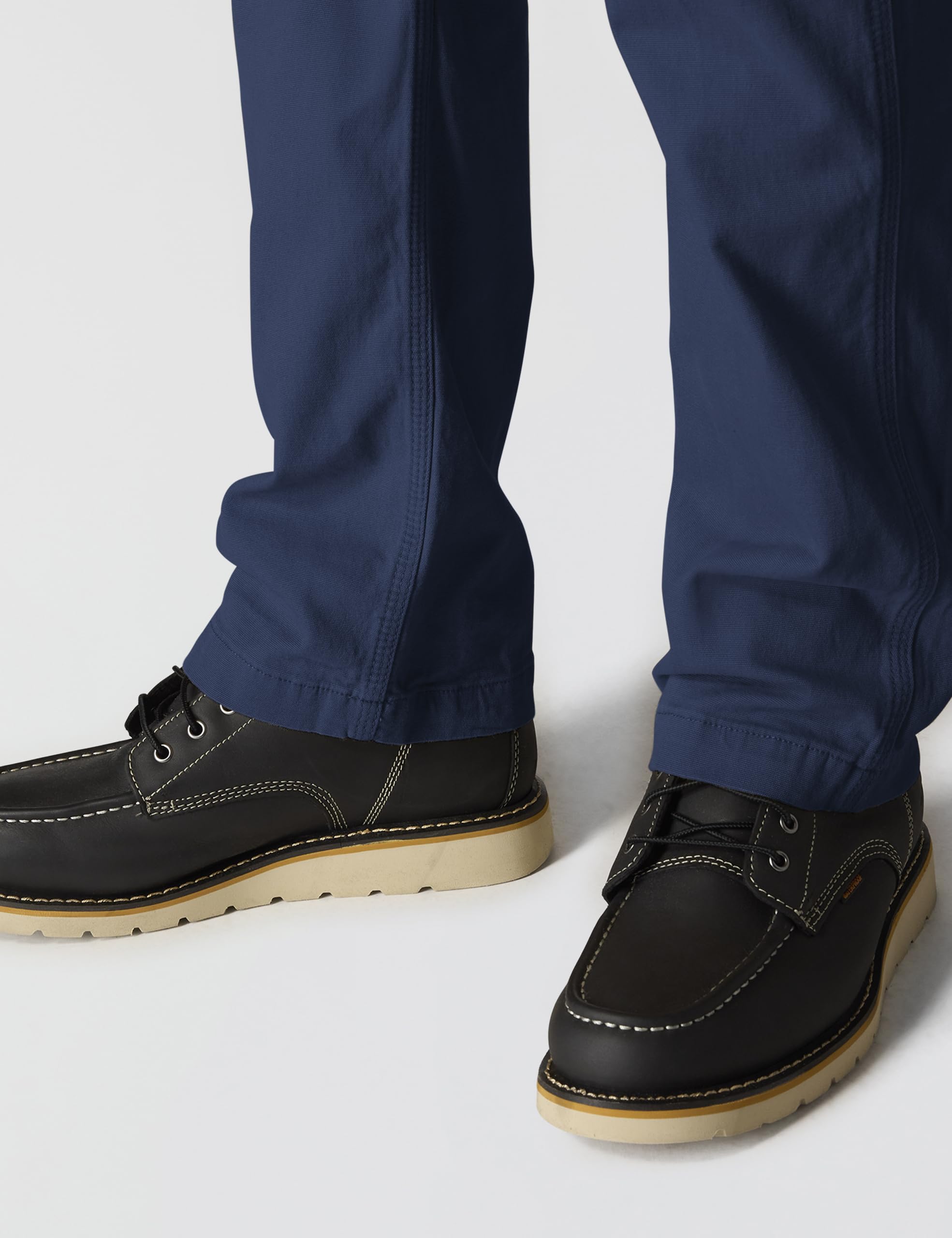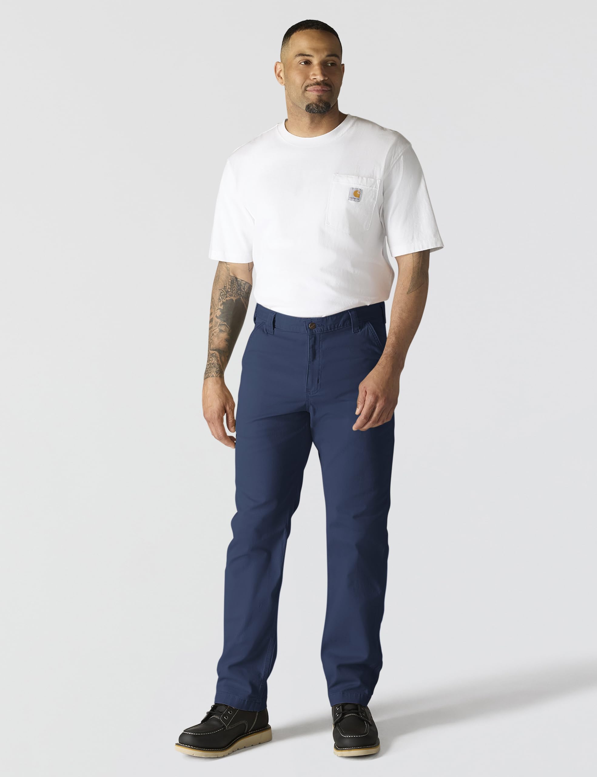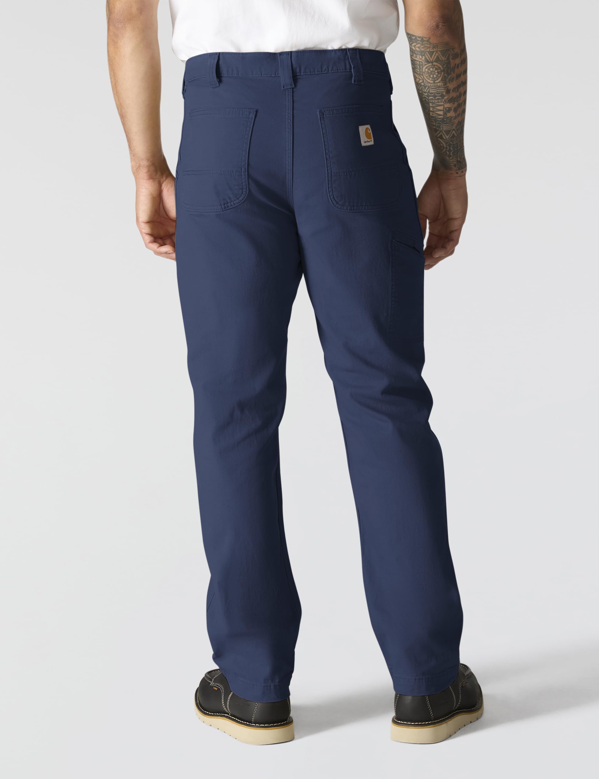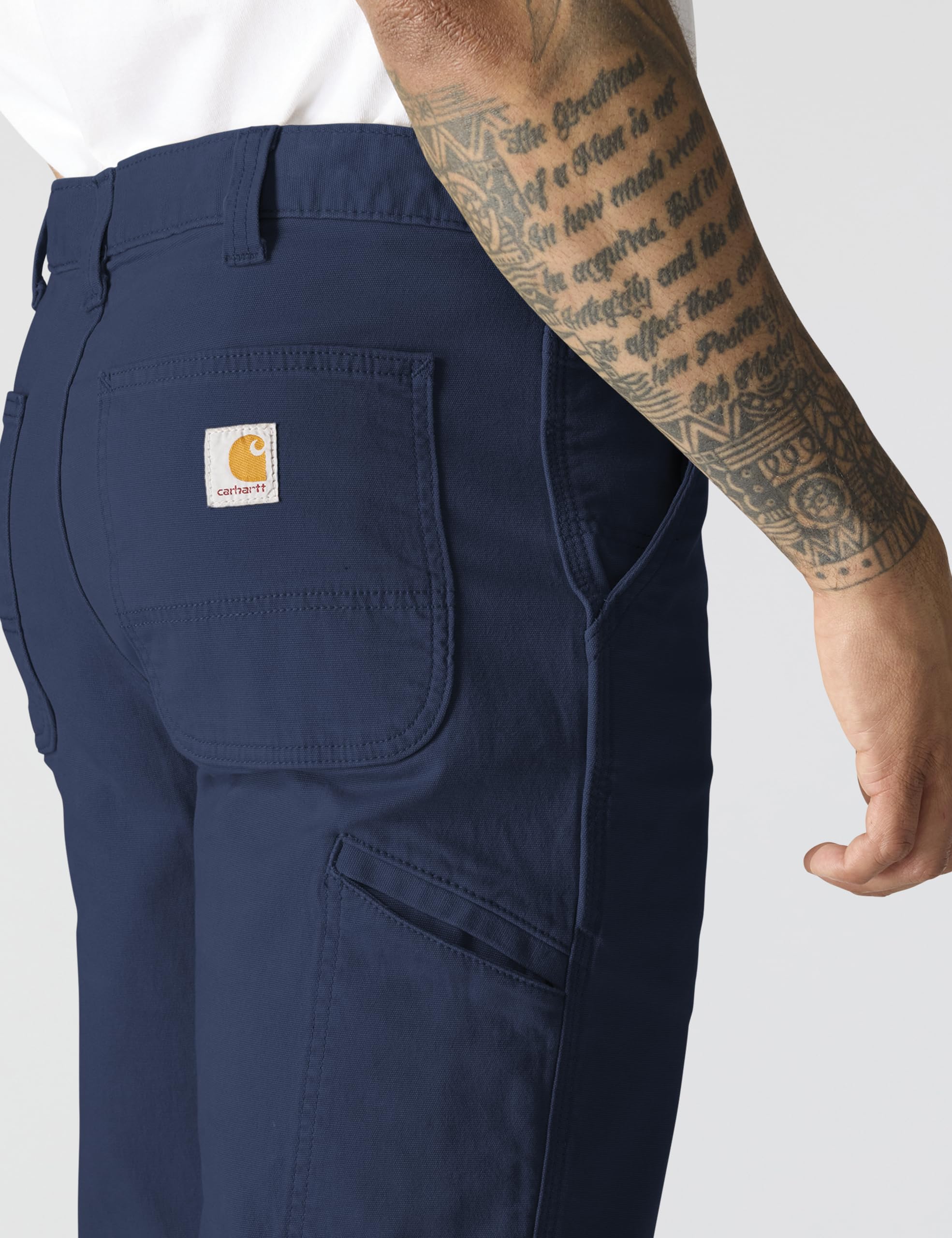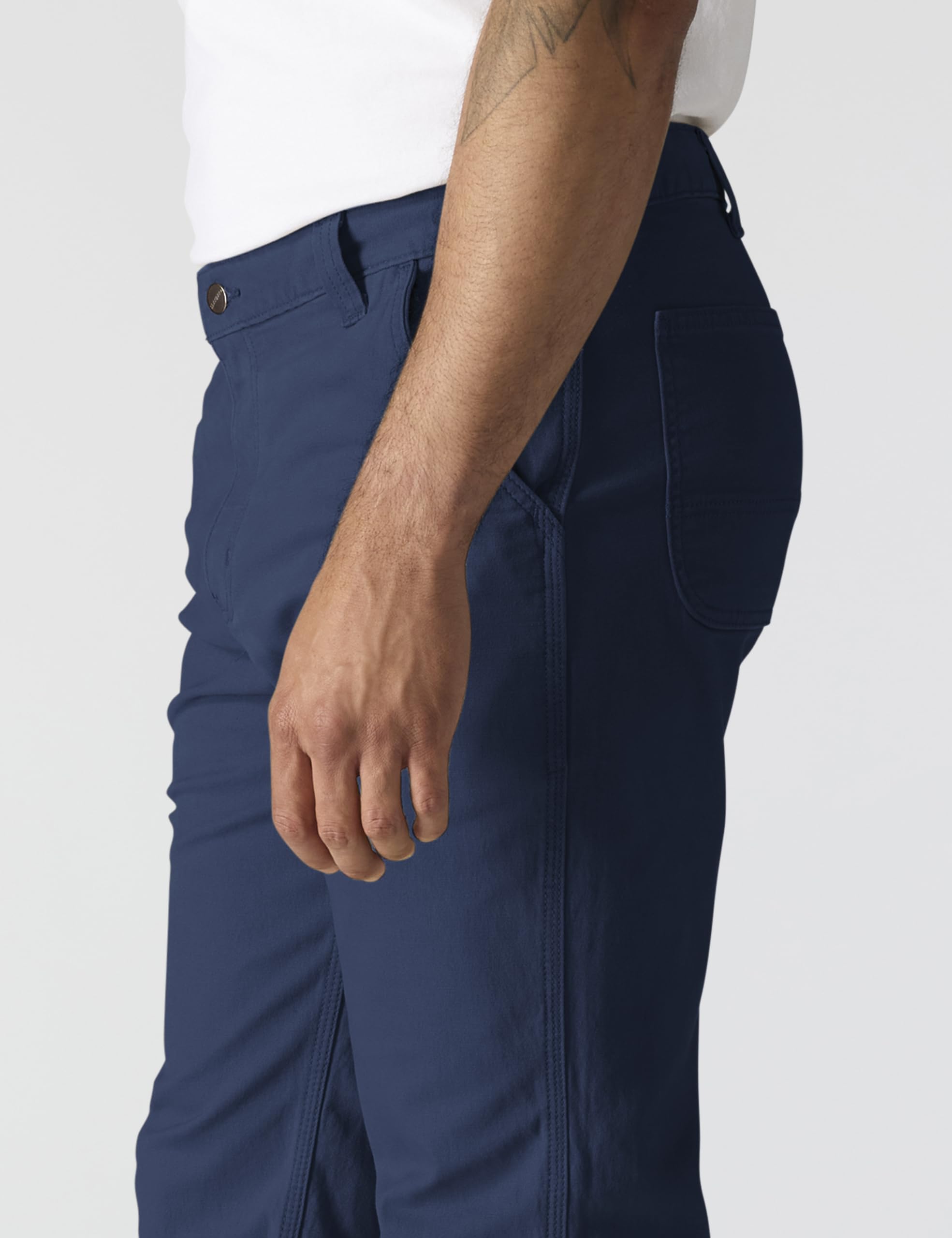 Description This dungaree features a hint of stretch for comfort and a cell phone pocket for functionality. It's made from 8-ounce, 98 percent cotton/2 percent spandex canvas and sits at the waist, has a relaxed seat and thigh, reinforced front slash pocket, belt loops sewn on the seam for strength, right-leg secured cell phone pocket and straight leg opening.