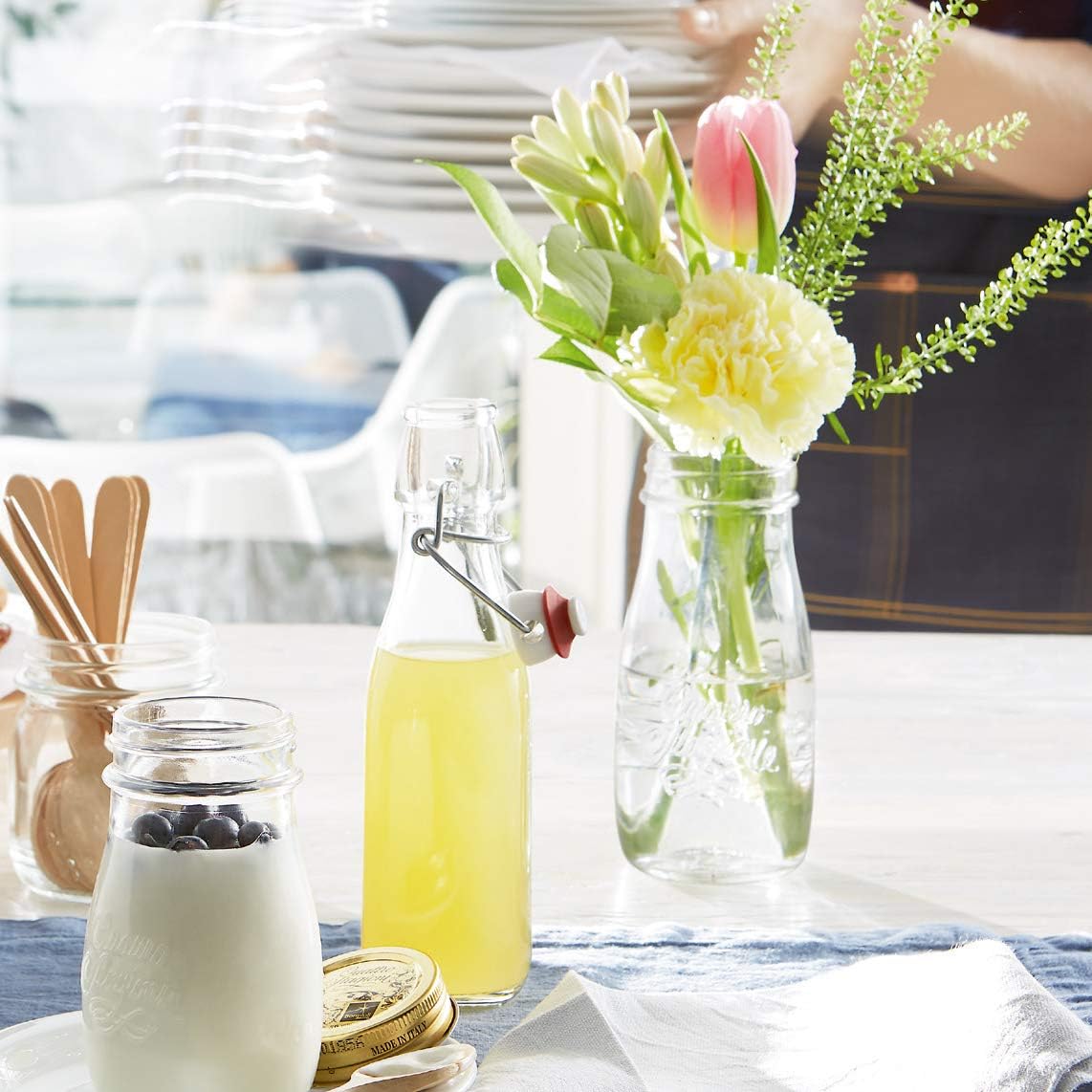 Enhance your beverage storage with the Bormioli Rocco Swing Bottle - 8.5 oz, a beautifully crafted recyclable glass bottle made in Italy. Featuring a sleek square base for stability and grip, this bottle seamlessly blends functionality with style. Whether you're serving infused drinks, homemade juices, or crafted syrups, its airtight swing top preserves freshness and flavor. Designed for versatility, this BPA-free bottle is perfect for everyday use, from kitchen storage to stylish table presentations. The metal clamp and rubber gasket create a reliable seal, keeping liquids secure. While the glass body is dishwasher safe, the swing top components should be carefully washed by hand to ensure lasting performance. Ideal for multiple uses, this glass bottle is great for storing infused water, specialty oils, cold brews, and even homemade dressings. The recyclable glass construction provides an eco-conscious alternative to plastic, offering a more sustainable way to store and serve drinks. Please note that the rubber gasket is not suitable for carbonated drinks or direct contact with pure oils, maintaining the integrity of the seal. Whether you're hosting a gathering, setting up a buffet, or looking for a stylish storage solution, the Bormioli Rocco Swing Bottle brings elegance and practicality to your drinkware collection.