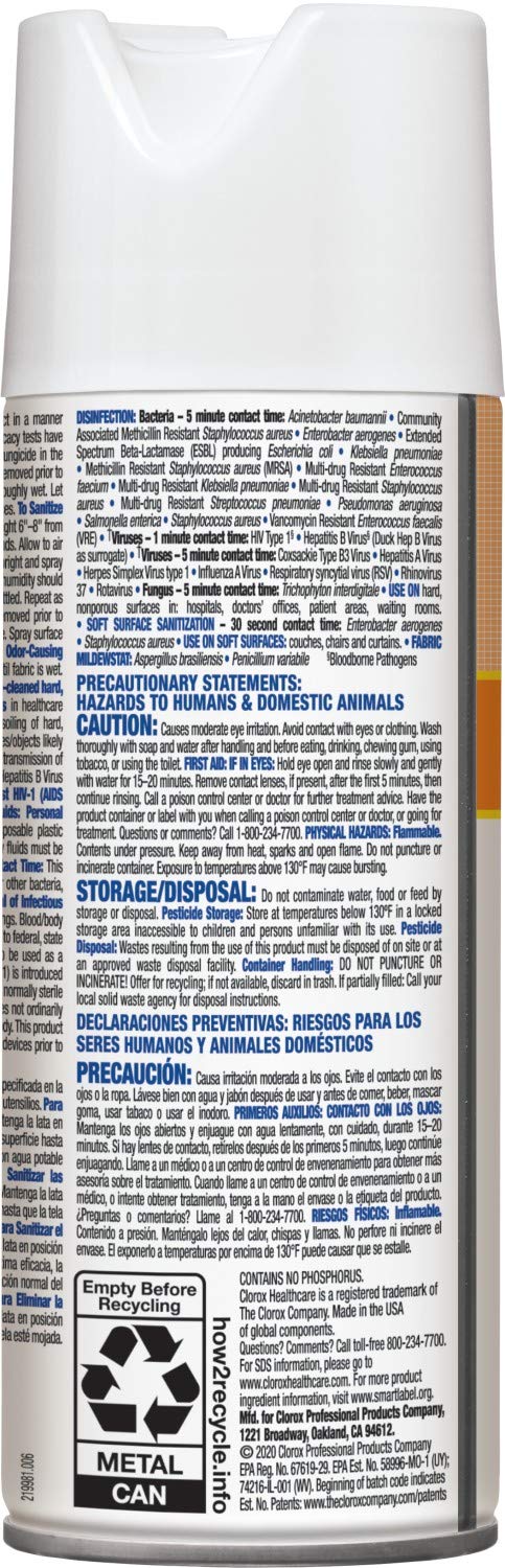 Product Description Clorox Healthcare Citrace Hospital Disinfectant and Sanitizer kills microorganisms on soft surfaces, hard surfaces and more. It kills 99.9% of bacteria on soft surfaces in just 30 seconds. It kills 24 microorganisms on hard surfaces in 5 minutes. This hospital disinfectant also meets EPA criteria for use against SARS CoV 2, the virus that causes COVID 19. With a fresh citrus scent, Citrace kills airborne odor causing bacteria. Intended for use in healthcare settings, this hospital grade disinfectant is even effective on privacy curtains, furniture, and other fabrics. Use this bleach free Clorox Healthcare spray to inhibit mold and mildew in your facility. Whether you use Citrace Hospital Disinfectant and Sanitizer in a hospital, outpatient facility or other healthcare facility, its germ killing power will give you confidence that your surfaces are clean and refreshed. Manufacturer Contact Information 1-800-234-7700