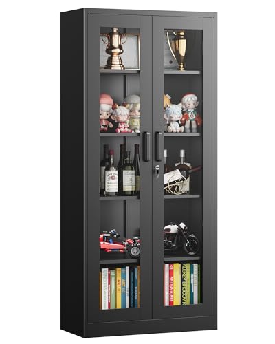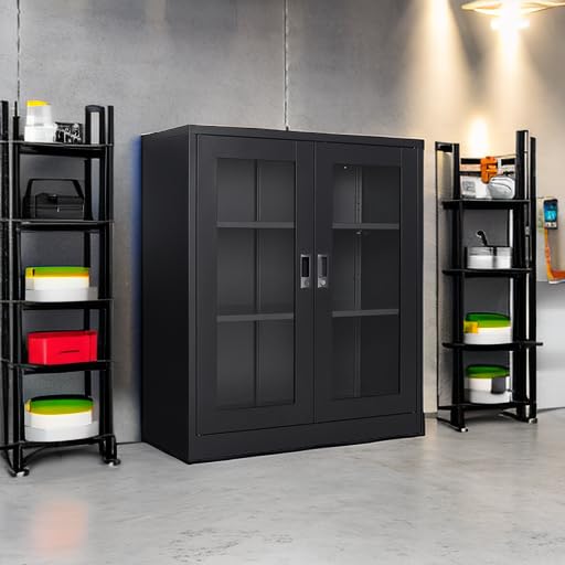 ✨【Sturdy and Durable】: metal storage cabinet is made of high-quality steel and tough tempered acrylic to ensure strong and durable. Anti-tip hardware and sturdy frame ensure stability and safety. Tempered acrylic doors keep your favorite items away from dust. And the smooth painted surface of the garage storage cabinet is very easy to clean
