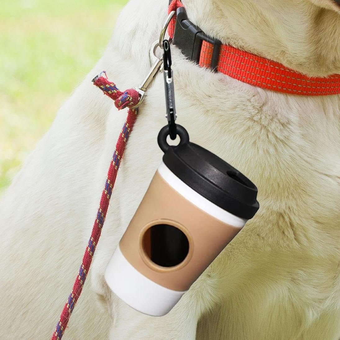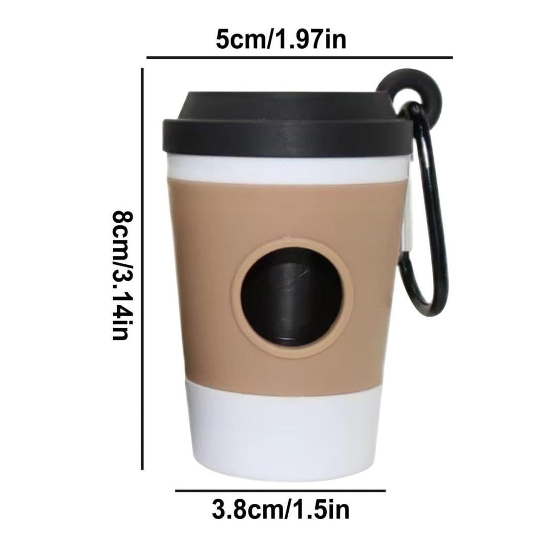 ☕ Stylish Coffee Cup Design – This fashionable, lightweight holder resembles a portable coffee cup for discreet, convenient waste bag storage during walks. The compact shape fits easily in pockets or bags.