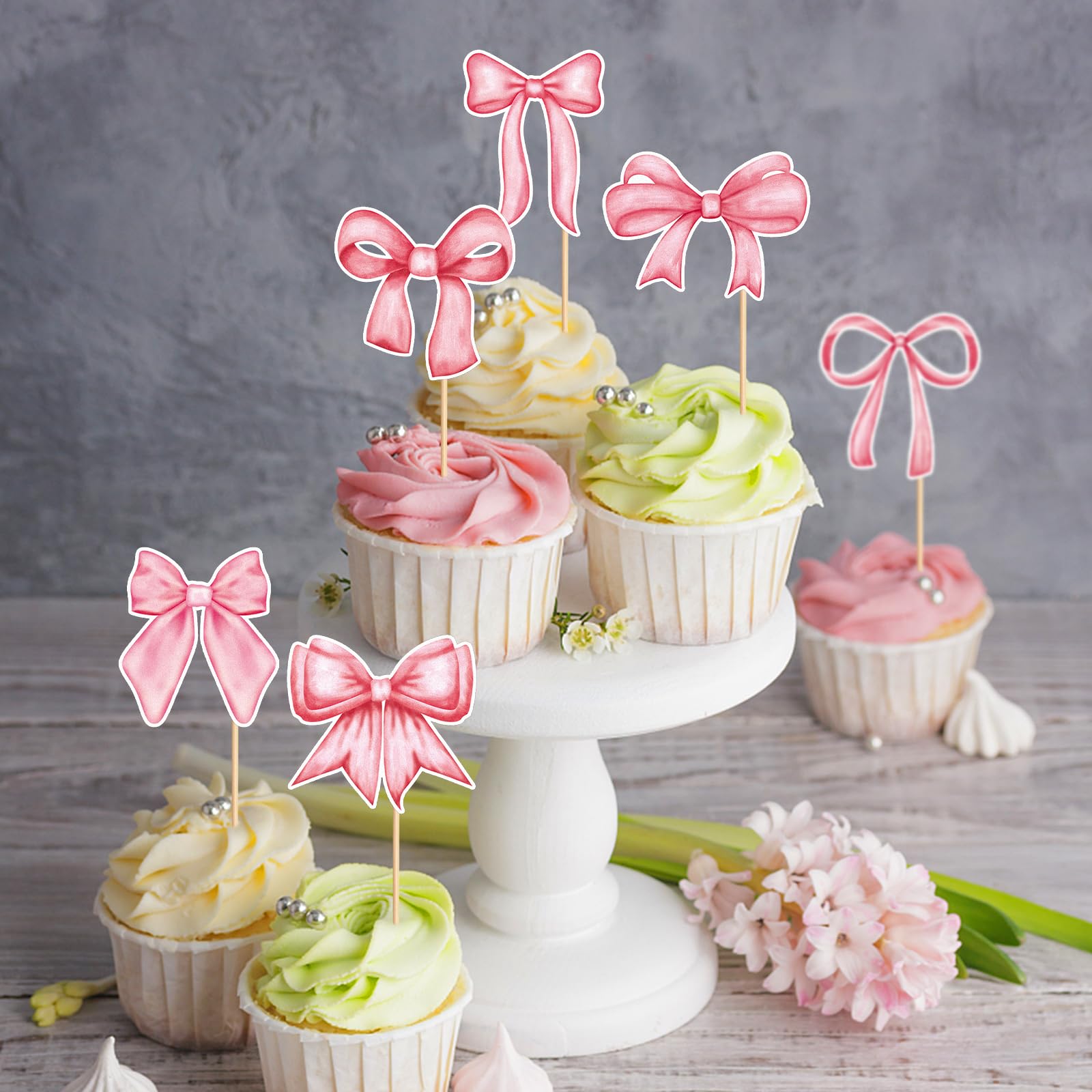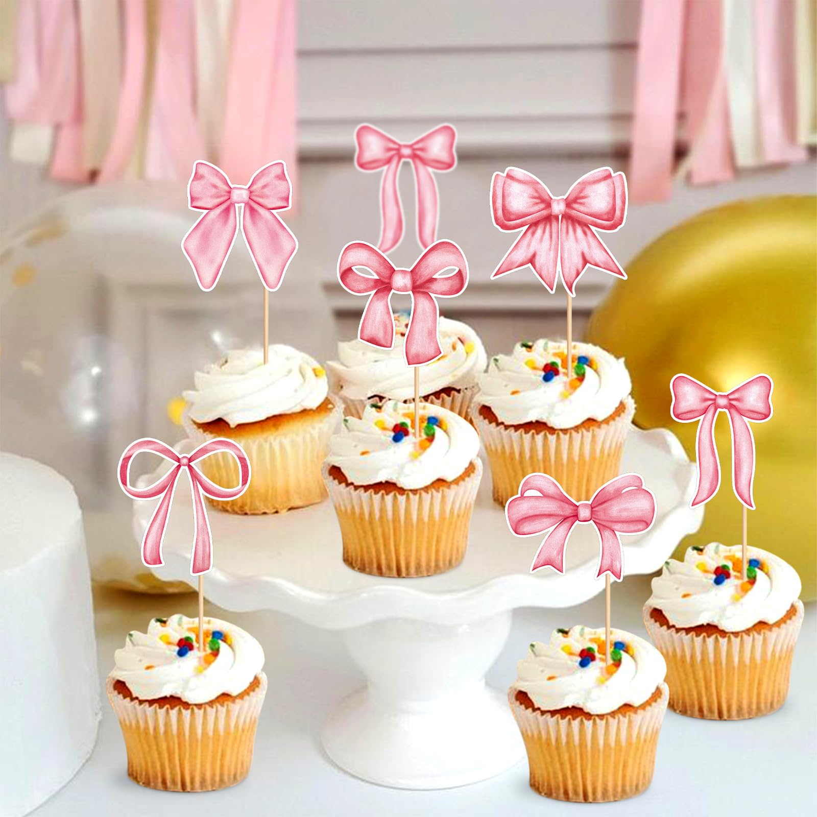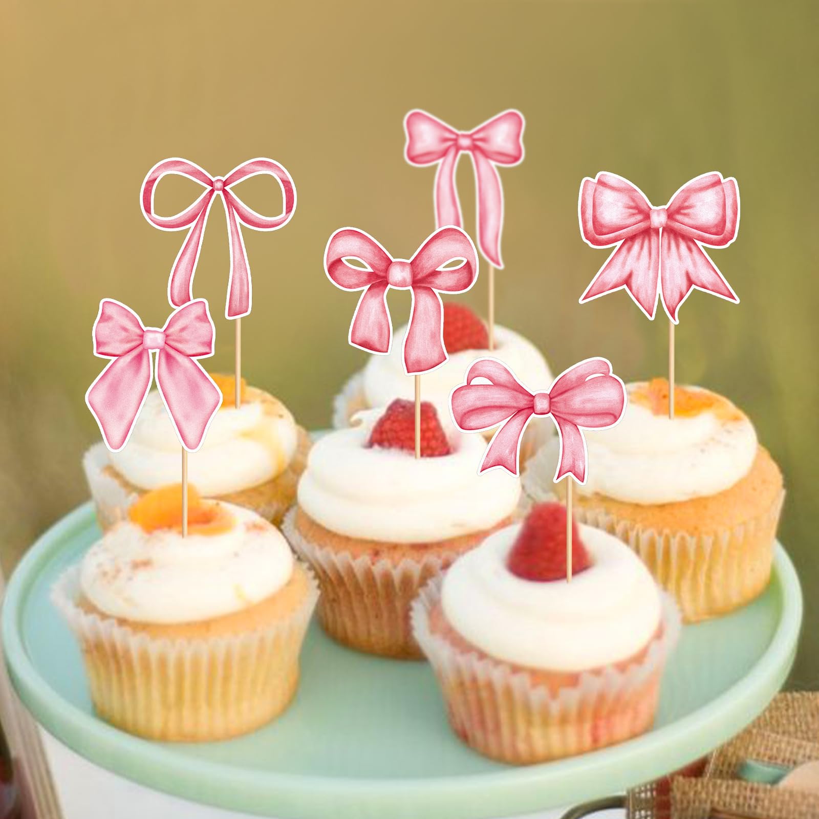 Occasions:the bow cupcake toppers are suitable for decorating cakes, cupcakes, desserts, muffins, ice cream, jelly, table centerpieces, appetizer picks, fruit picks, party food picks, etc.