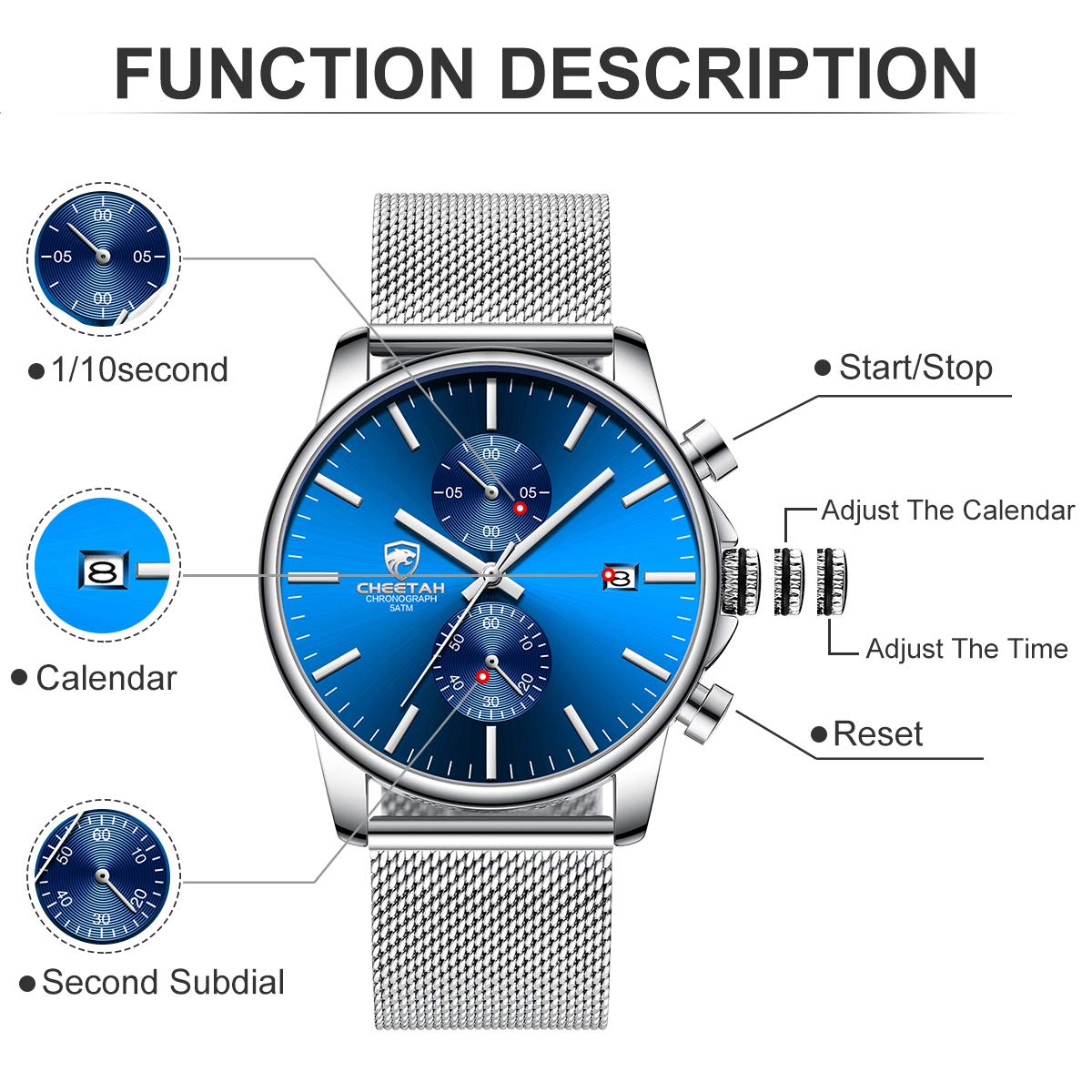 ⌚Sports chronograph: Multifunctional sub-dial can work, chronograph, calendar, run seconds. Provide you with multi-function purpose use.