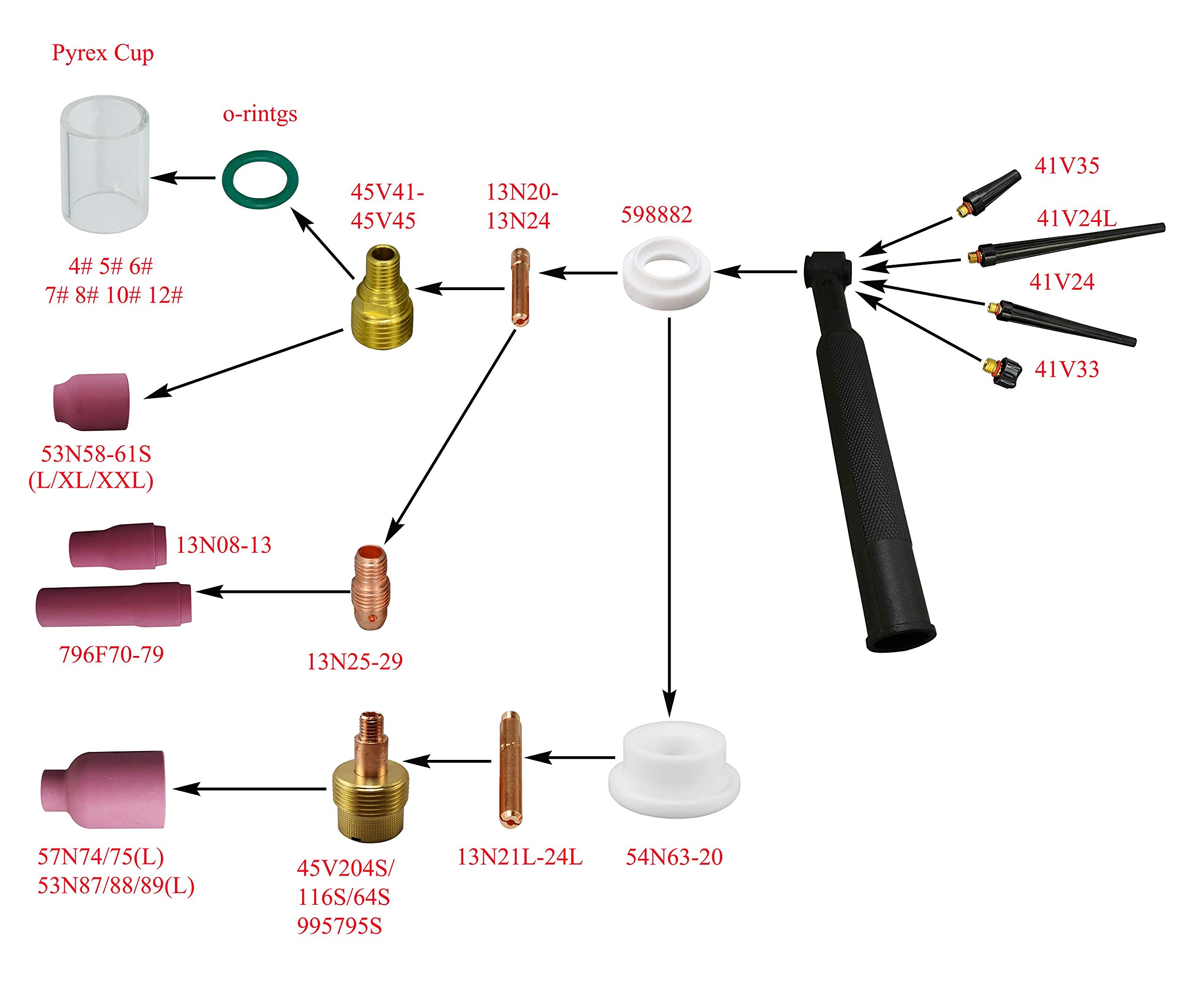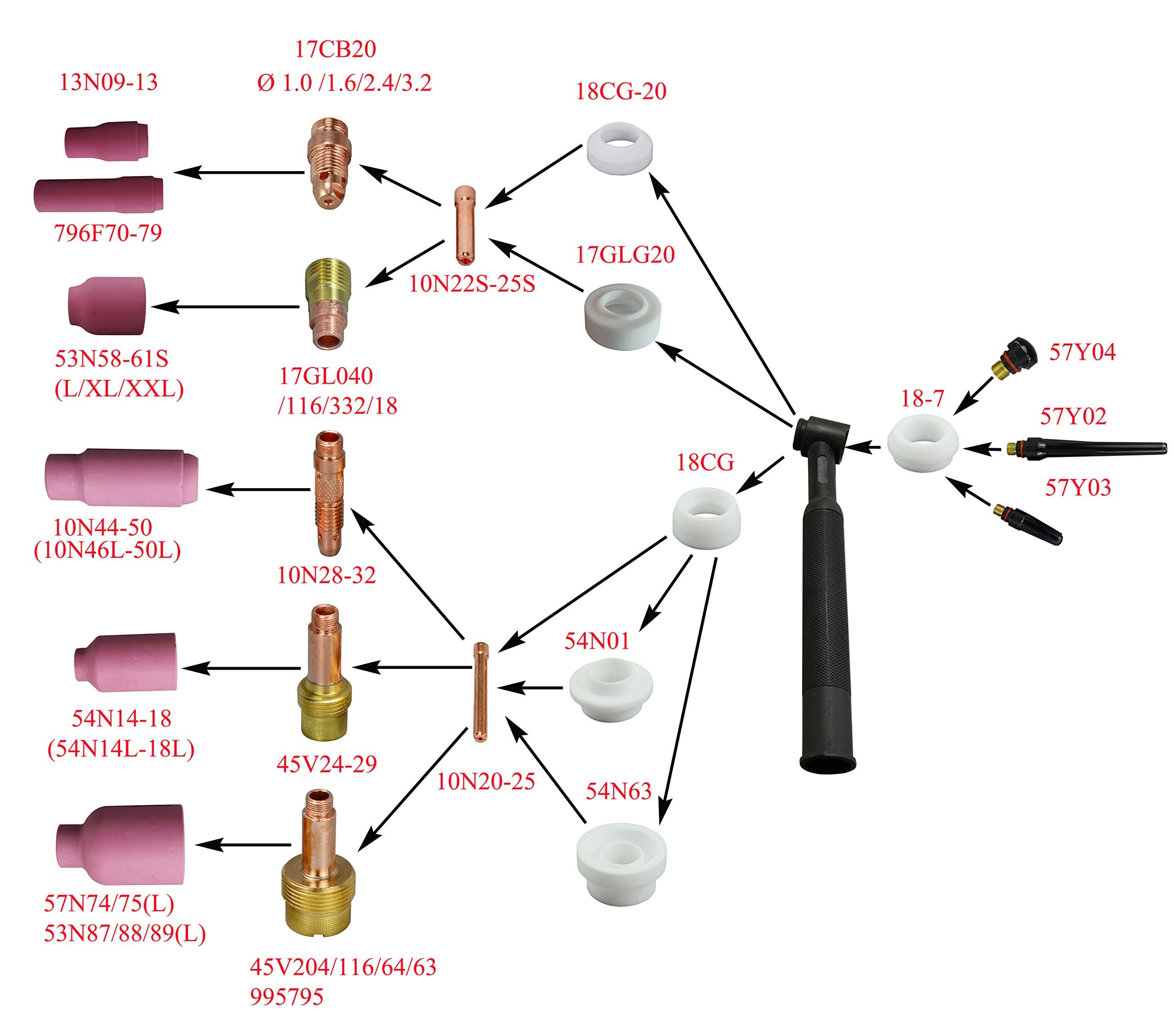 Large gas lens Alumina ceramic cups 53N88 #10 for large gas lens fit TIG welding torch 9 17 18 20 26 Ref No 53N88 #10 Orifice Size: D16 x 48mm Quantity: 10pcs These Alumina Large Gas Lens fit all 9 17 & 26 series air cooled torches and 18 20 series water cooled torches, including the Lincoln PTA-17, PTA-18 and PTA-26 torches, Miller Diamondback DB17, DB18 and DB 26 torches, along with the Weld craft WP-17, WP-18 and WP-26 torches.
