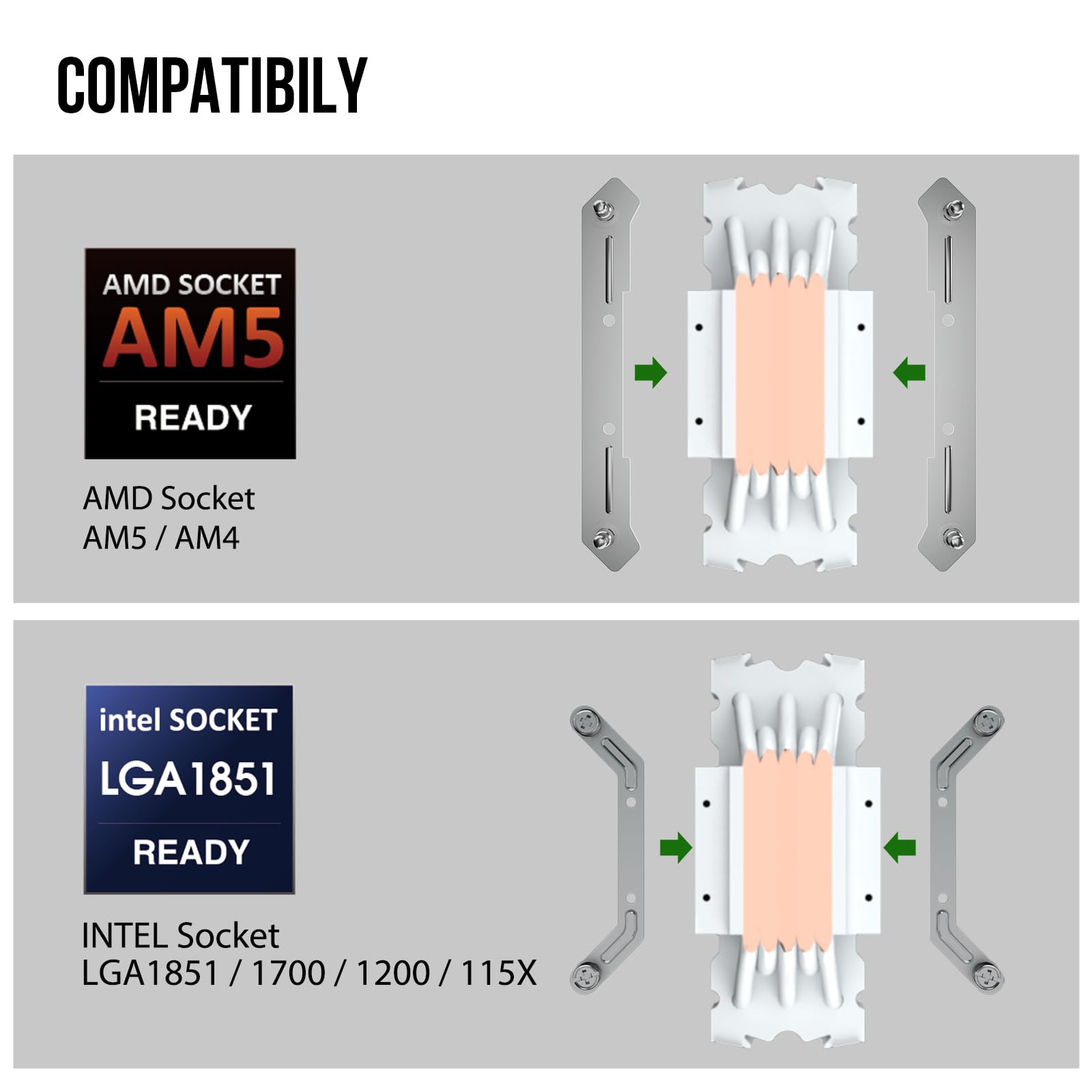 AMD/Intel Bracket Support: Intel LGA 1851/1700/1200/1150 & AMD AM5/AM4 supported